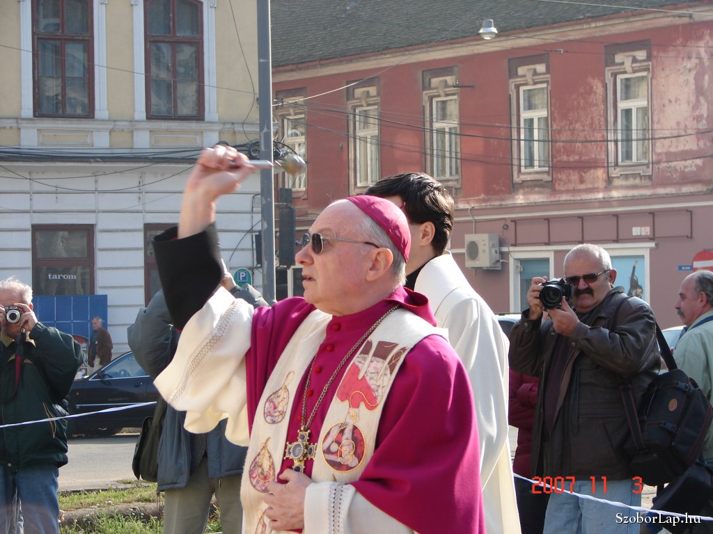 Az eredeti konszakrációs tábla nem került vissza az obeliszkre. Azt a lebontáskor egy Arad-közeli falu templomába menekítették és a miséző(oltár) asztalt alakították ki belőle. Ott szolgál ma is. Ehelyett került fel az obeliszk hátoldalára a fentebb említett feliratú tábla.