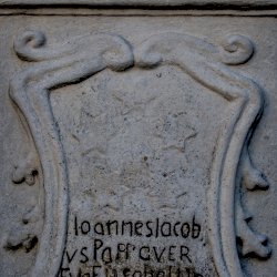 Nepomuki Szent Jánosnak a 18. században állított szobrán a gyónási titok megtartására utaló öt csillagos szimbólum (TACUI=hallgattam) a talapzaton található.