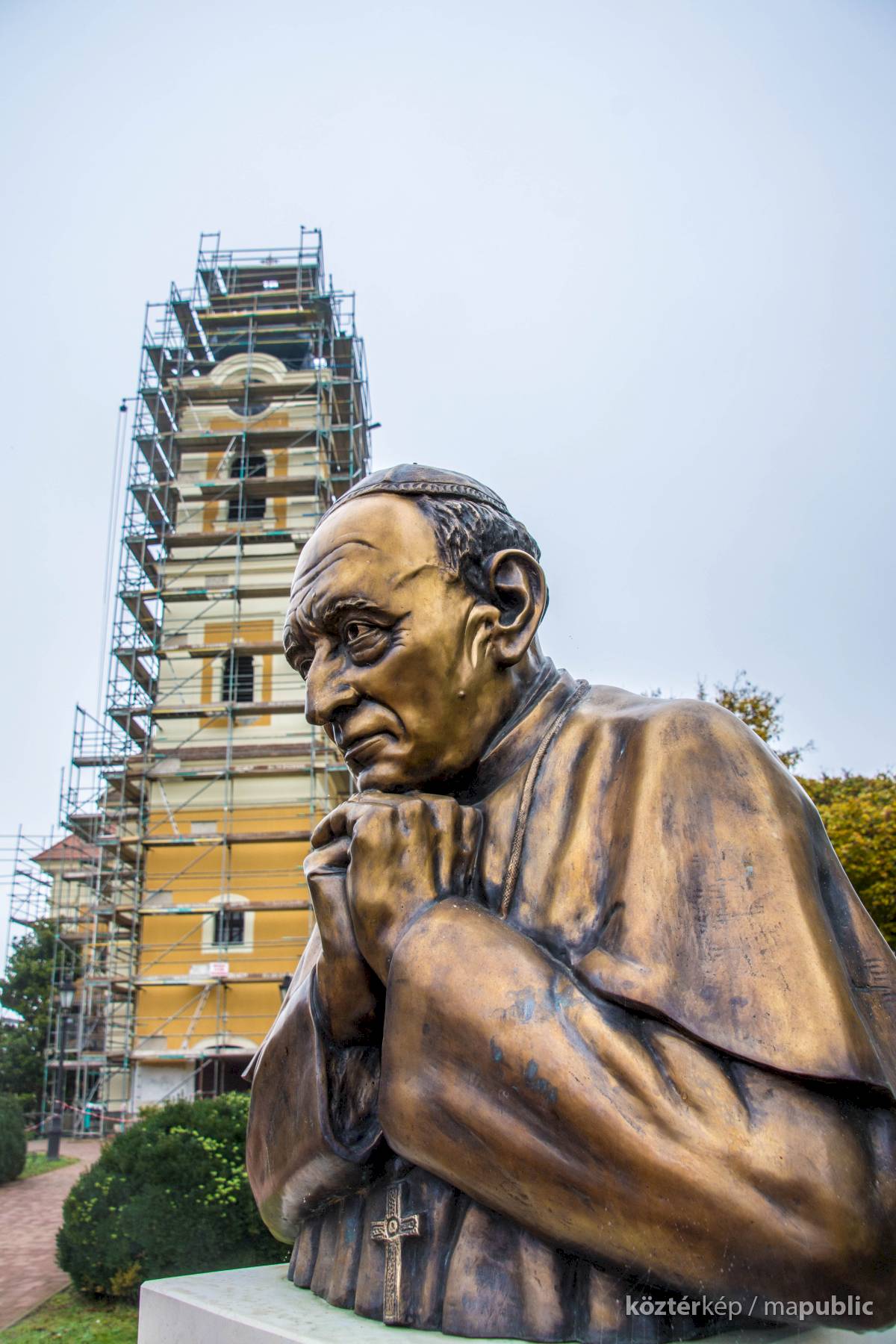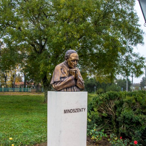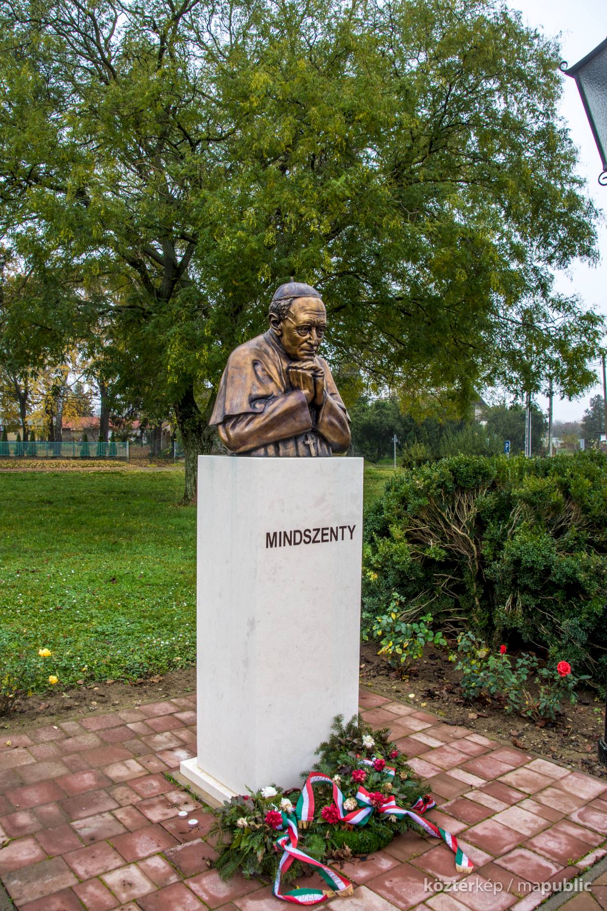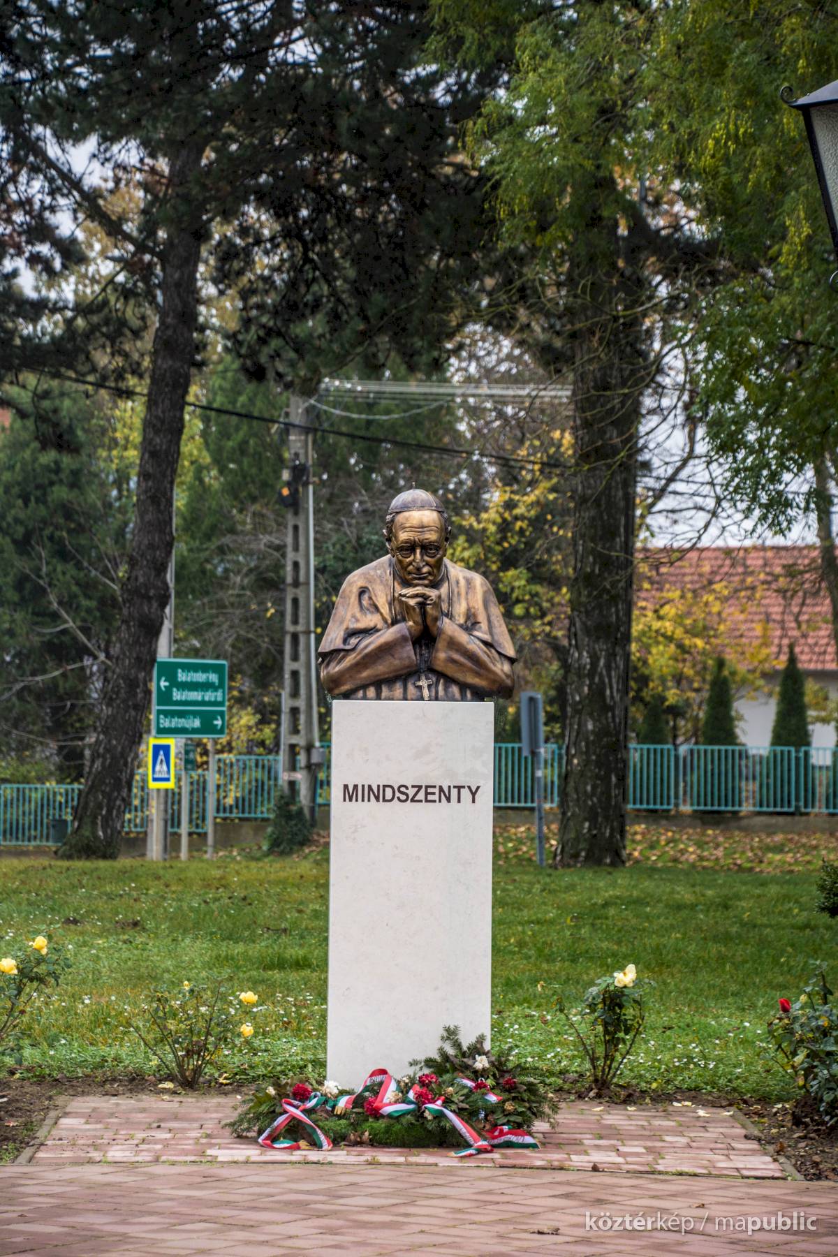 Balatonkeresztúron, a templom kertjében, a világháborús emlékművel szemben található ez az alkotás. A mű bronzból készült, és Mindszenty Józsefet ábrázolja. Az idős hercegprímást püspöki sapkában, imára kulcsolt kézzel, reverendában, nyakában kereszttel jelenítette meg az alkotó. A szobor talapzatának elején a "Mindszenty" felirat található, a hátulján pedig a következő szöveg olvasható: "A Balaton Fejlesztési Tanács támogatásával állíttatta Balatonkeresztúr község önkormányzata 2024." A mellszobrot 2024. március 14-én, csütörtökön avatták fel, Kossuth szobrával együtt (lásd: a kapcsolt műlapon.) [1] Alkotója Babusa János Munkácsy-díjas szobrászművész, szignója a szobor hátulján látható: B.J. 2024. Az alkotás szép állapotú, környezete rendezett.