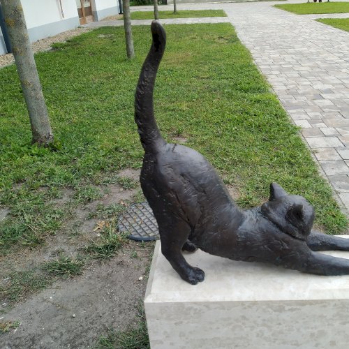 A kiindulás egy márciusi Fb-poszt: zsörtölődés, hogy az aznapi szoboravatás zárt körű... Melléklet egy nyújtózkodó cica bronzból. Ebből sok dolog nem derült ki, csak amikor megtaláltam az alkotó két posztját, ami megerősíti. [1]