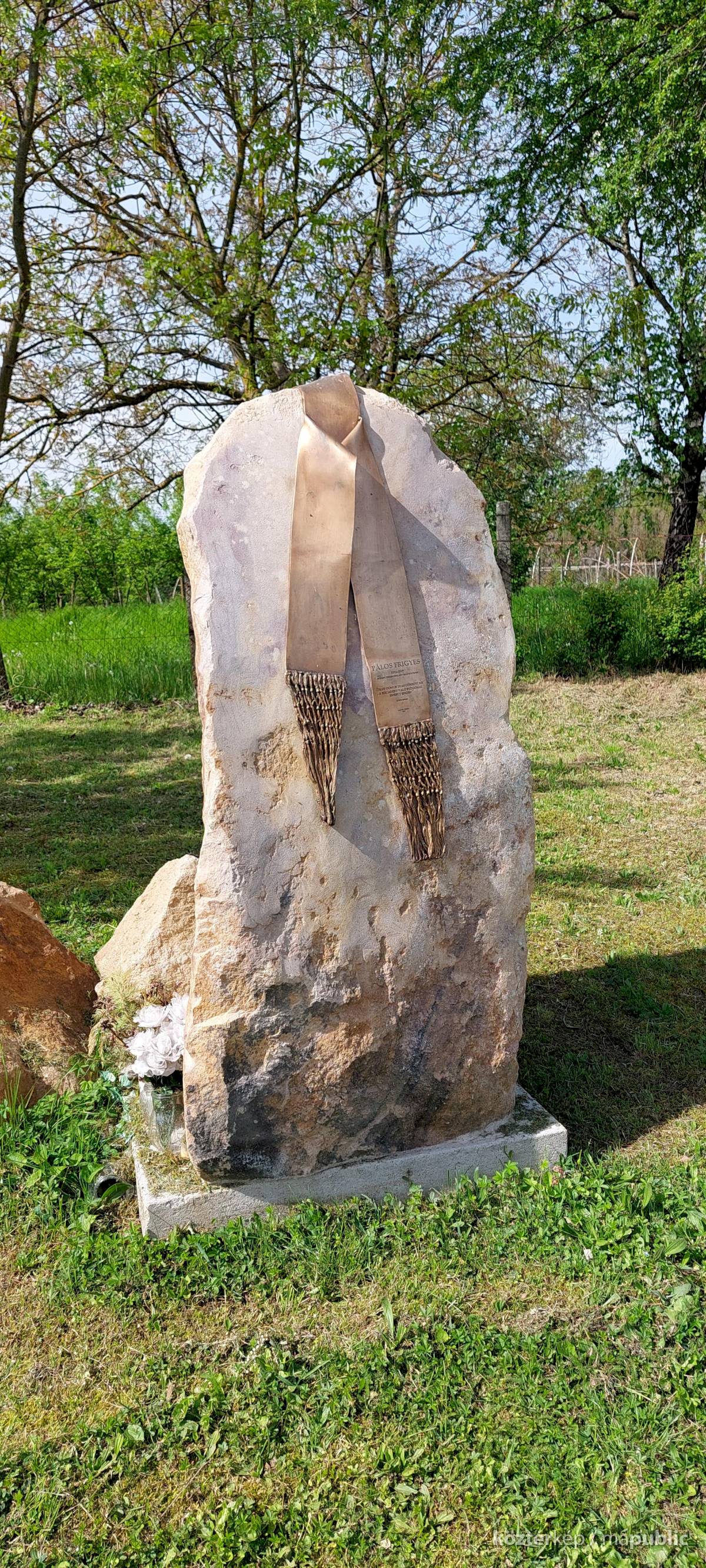 Szeretett templomával szemben egy kis füves területen állították fel emlékkövét, amit 2023. július 1-én avattak és szenteltek meg. A szentmisével kezdődő avatóbeszédet dr. Beer Miklós nyugalmazott püspök tartotta. A két alkotóval együtt avatták fel majd Beer Miklós megáldotta az emlékkövet[3].