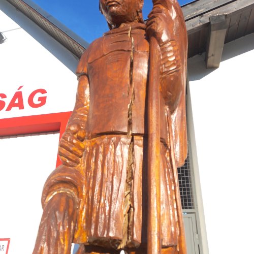 A szobrot készítette: Bálint József, a Magyar Kultúra Lovagja, Ezüst Érdemkeresztes Faszobrásza.
