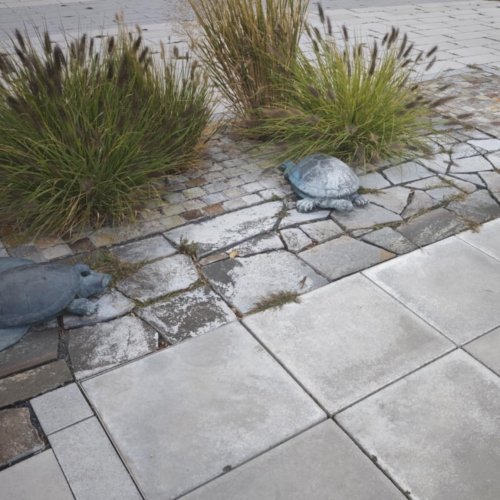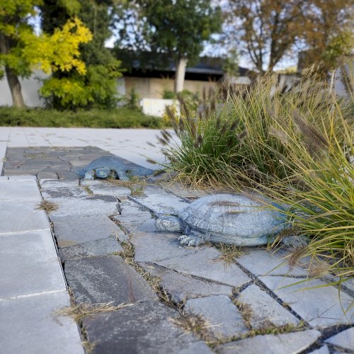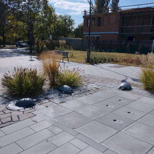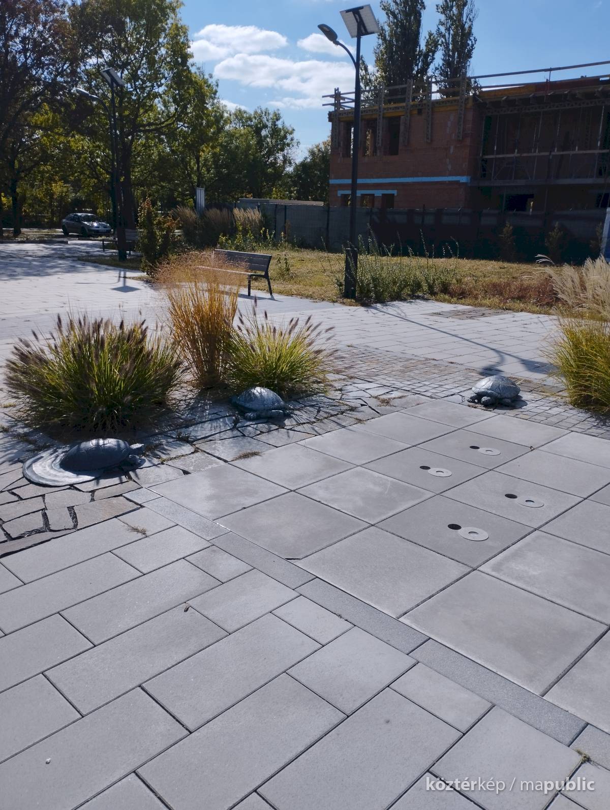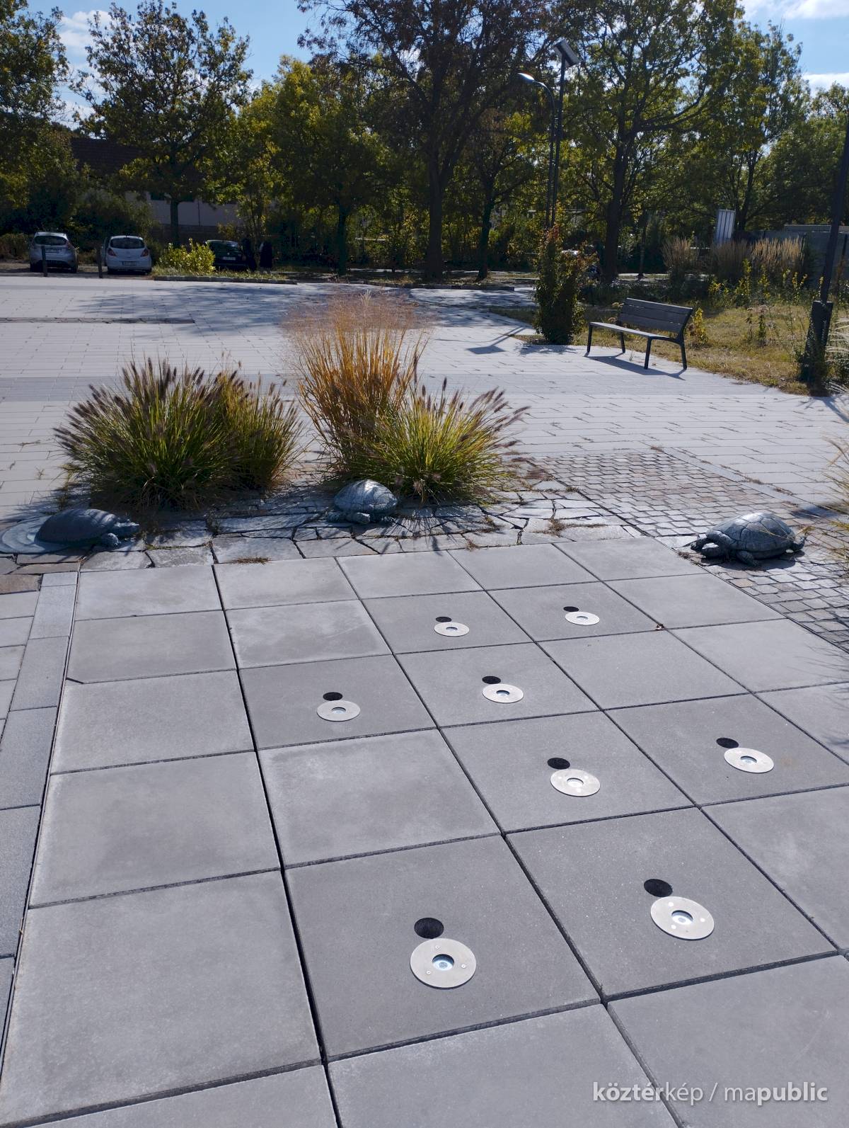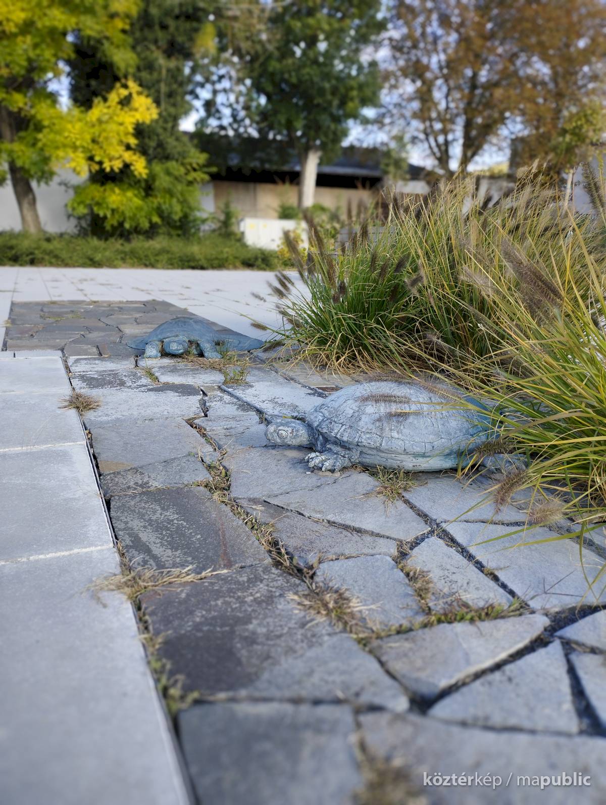Mindezzel együtt a három teknős csoportja a szökőkúttal igazán kedves jelenség, a gyerekek biztos, hogy rögtön megtorpannak, amint meglátják őket. Nagy pancsolások várhatók, ha beindul a szezon!