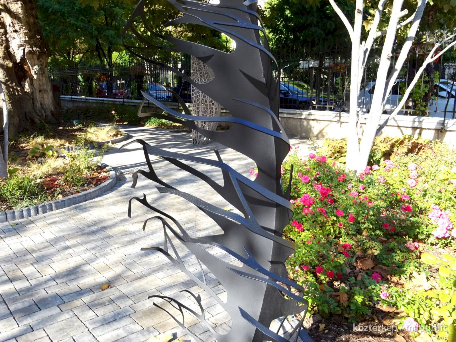 A levél tehát a lágy vonalat képviselő egyik alkotás. Lényegében csak ismételni tudok. Bár ez a plasztika kicsit más, "...munkái természeti motívumokból, hálózatok megfigyeléséből indulnak ki: .. Innen ered a vonzódásom az olyan formák iránt is, ahol ezek a dolgok megfogható, látható formában vannak jelen, mint a rovarok szárnyának erezete, az érhálózatok, növényi relevanciák.