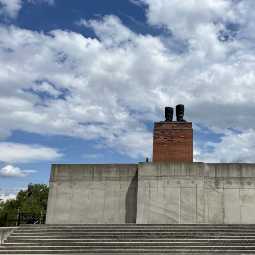 “1956-ban, az egyre gyorsuló drámai események folyamatában, október 23. reggelén még nem volt forradalom, estére viszont már “lánggal lobogott”. A kettő között volt, kellett lennie egy pontnak, amely a forradalom születésének pillanata. Ennek állít emléket a Tanú tér keleti oldalán a Sztálin-dísztribün és a Csizma: a Sztálin-dísztribün, amelynek építészeti mementója a diktatúra megalomániájának örök érvényű mauzóleuma, s a Csizma, amely a Tanú tér kontextusában nem szobor-torzó, hanem önmaga is “emlékmű”: a szabadságvágy világszerte ismert és elismert jelképe.”