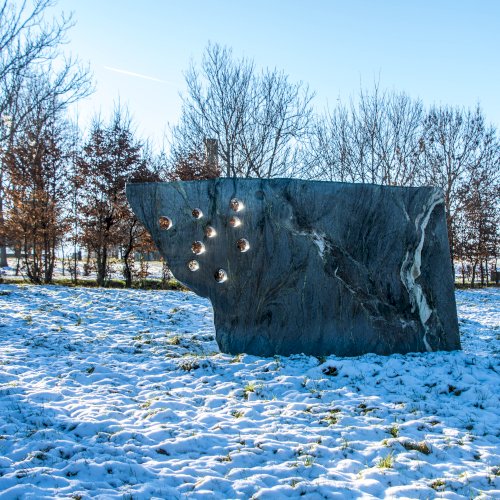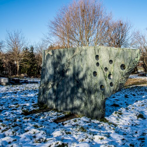 Stein zur Meditation, Engel, 1987-88, Serpentin-Tauerngrün, 220 x 410 x 45 cm, Pöttschinger Feld.
