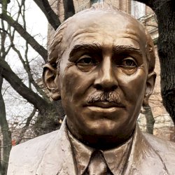 Végigvettem a már ismert gyűjteményt, és amikor a végére értem (a "K" épülethez), örömmel láttam a frissen csillogó mellszobrot, kicsiny koszorúval díszítve. Első ránézésre is ez volt a legújabb alkotás a sorban.