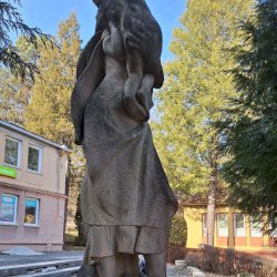 Az anya ölében a gyermek biztonságérzetet, ragaszkodást sugároz, az anyai szeretet szép példája a szobor.