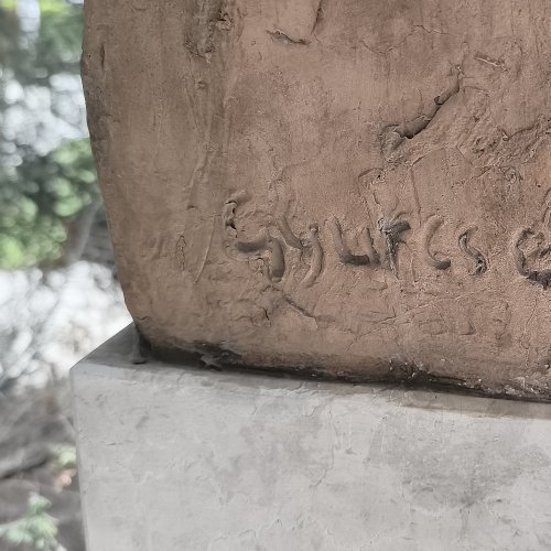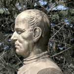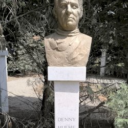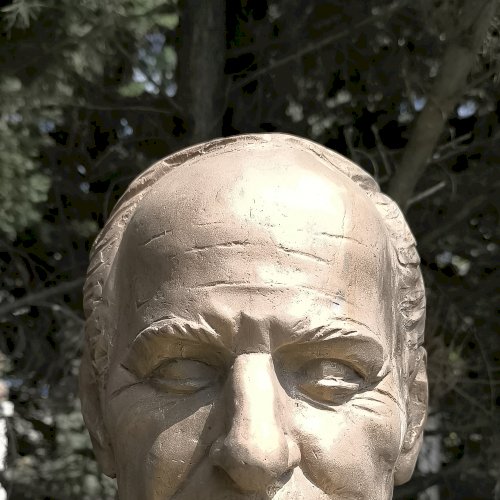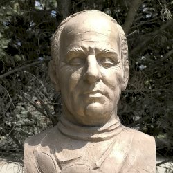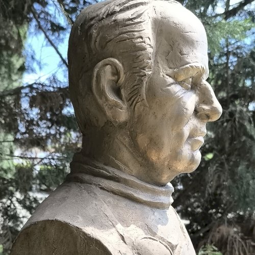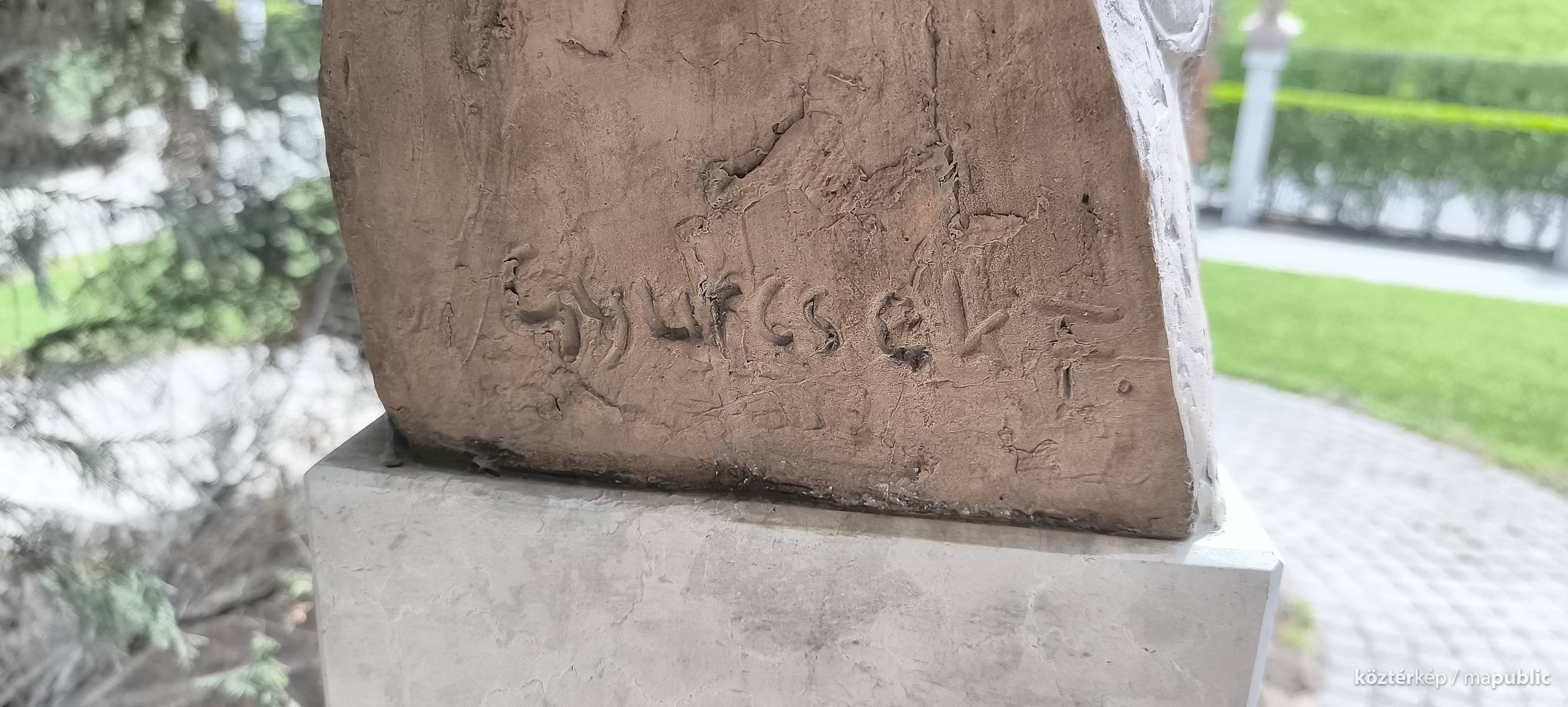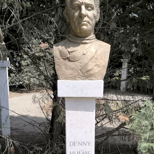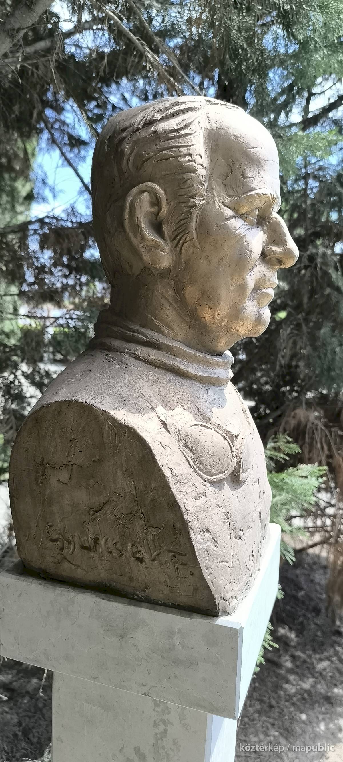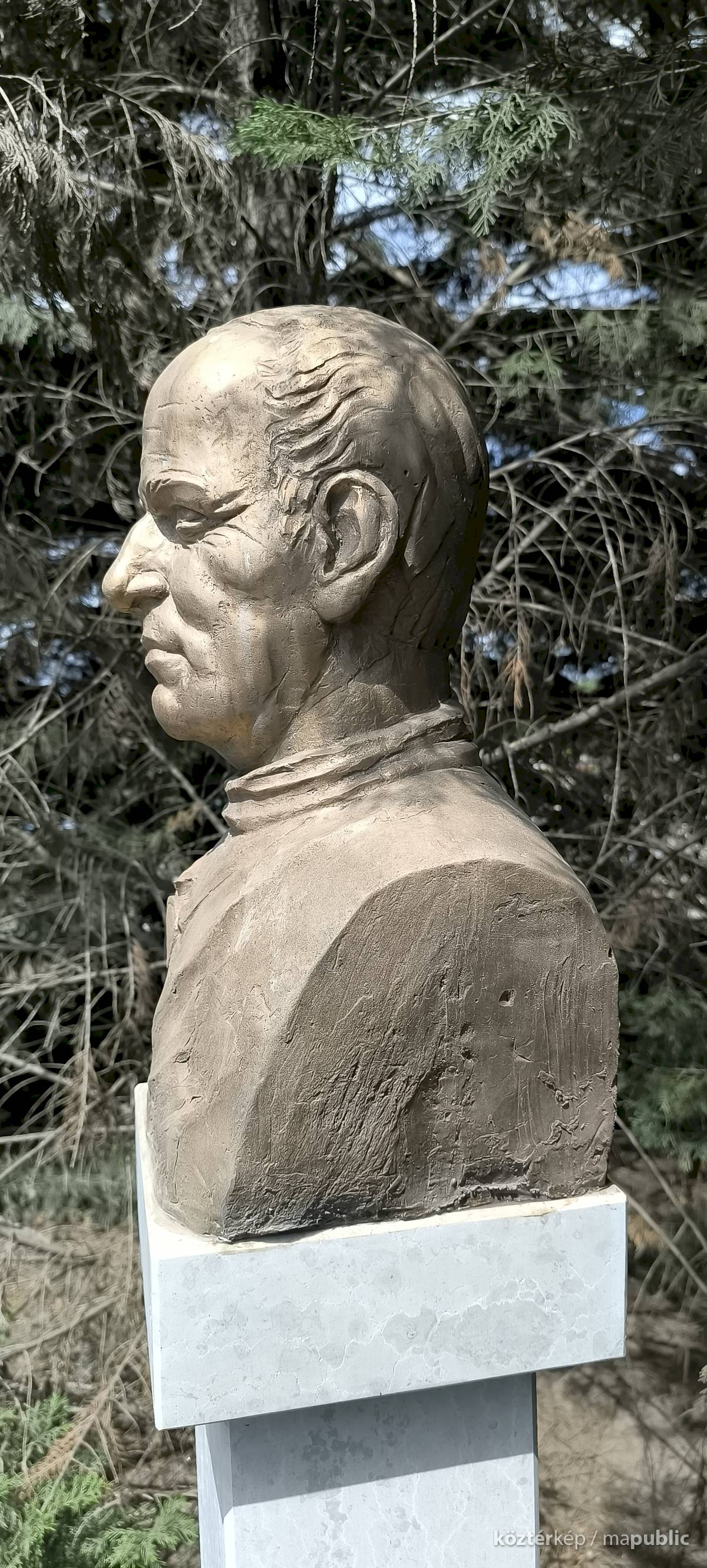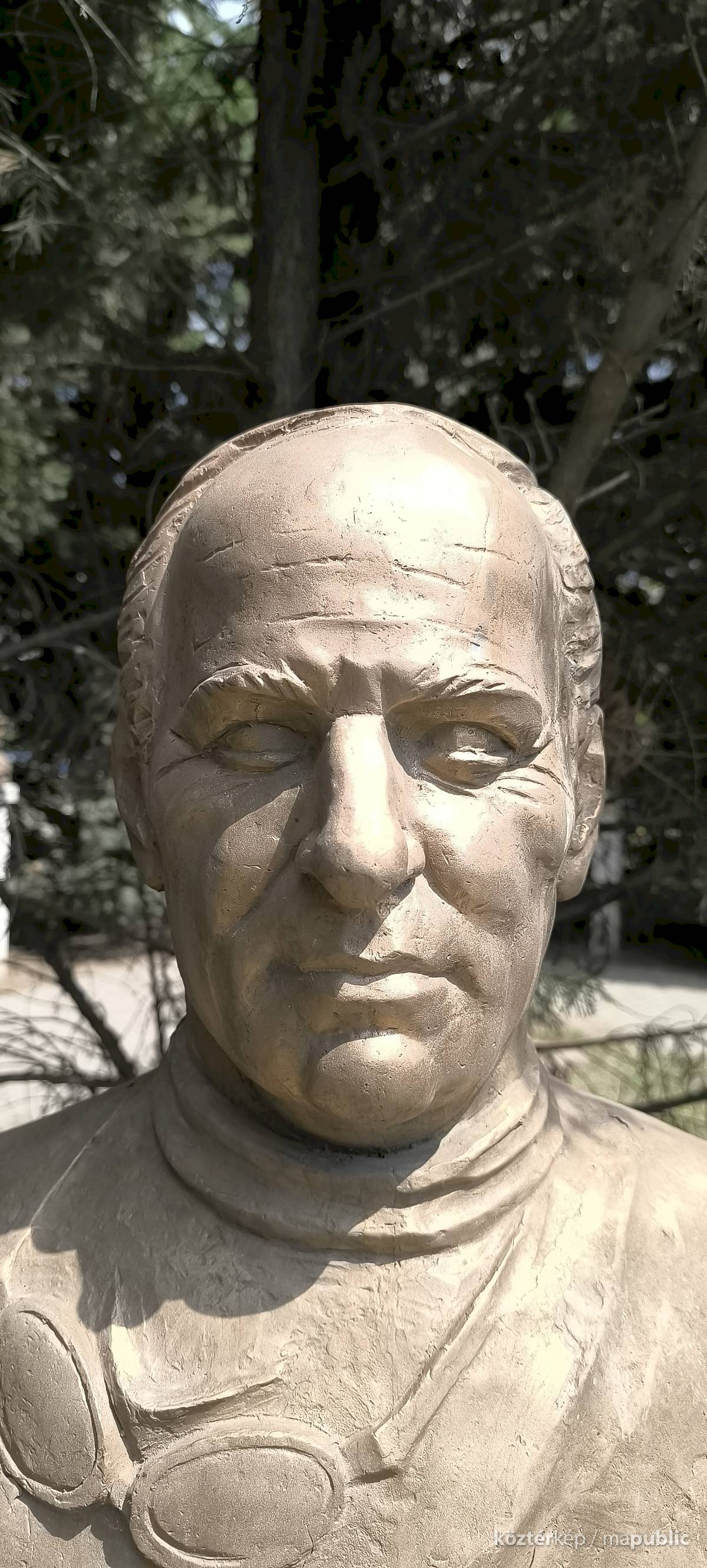 Szobra amelyet Gyurcsek Ferenc és munkatársai készítettek méltó helyen van a világbajnokok között. Klasszikus mellszobor, remekül megformált, kissé kopaszodó, de intelligens arc néz ránk. Abban az időben az overál felett sálat is viseltek. Pilószemüvege hanyagul a nyakán lóg.