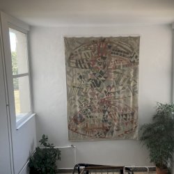 "Fürtös Ilona vastagabbra sodort színes gyapjúfonalat vezet a ritkásabban egymás mellé feszített felvetőfonalak közé. Ezzel a szövött felület rusztikusságát társítja a tudatosan átvett és egyéni kompozíciós rendben felhasznált népművészeti formakincshez."[1]
