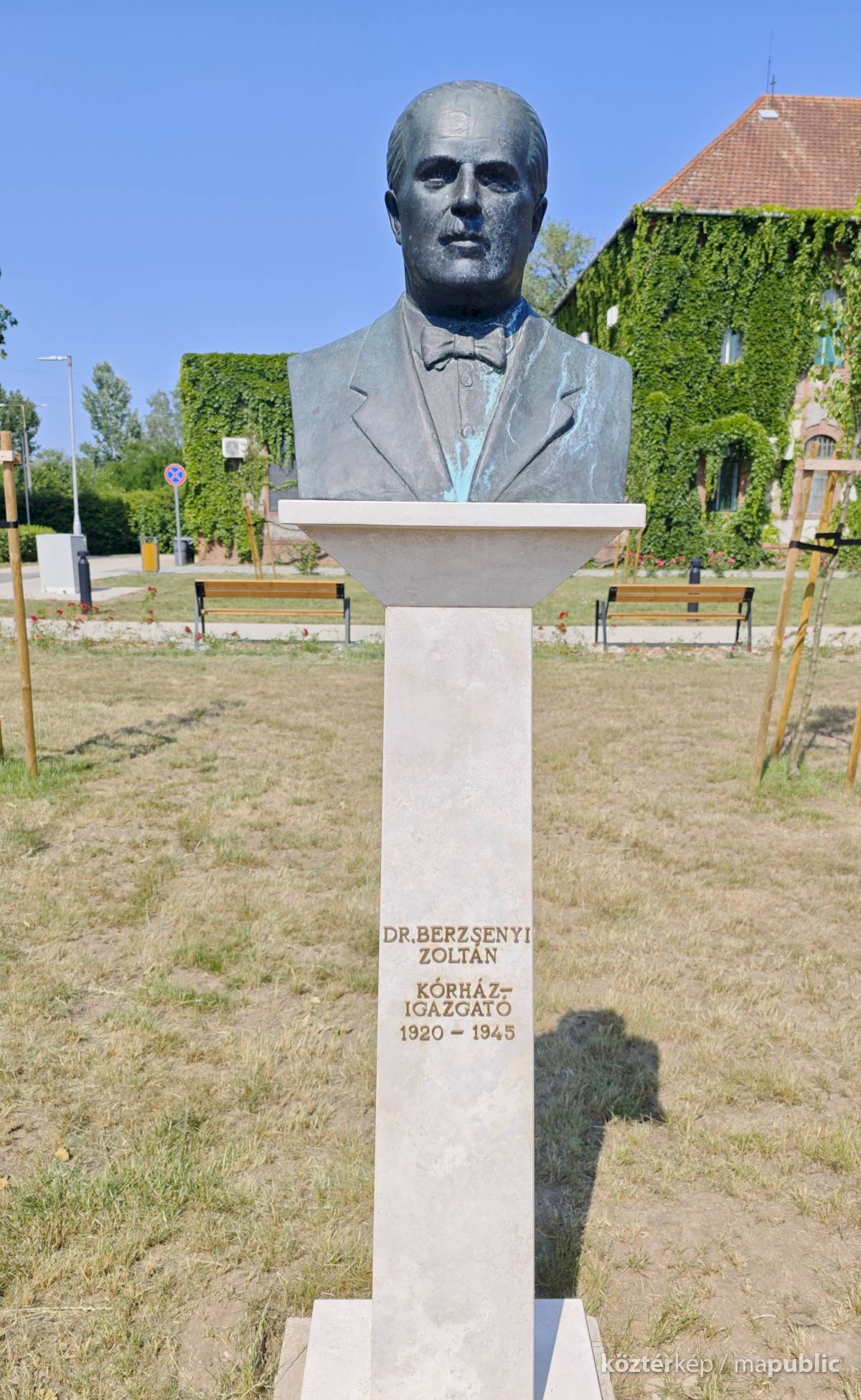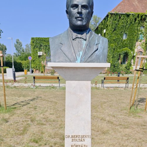 A talapzat felirata: Dr. Berzsenyi Zoltán kórházigazgató 1920-1945