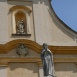 Homlokzati szobrairól készült műlap, amelyen azonban nem esik szó Szent Mihály szobráról.