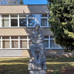 Gimnázium előtt az Ülő anya gyermekével szobor mindig eszébe juttatja a tanulókat a családjukra, édesanyjukra.