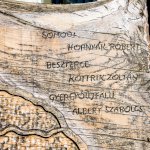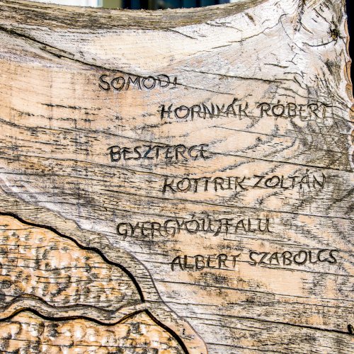 A bölcsőde és óvoda bejáratánál egy fatörzsbe vésve a bölcsődének nevet adó szitakötőt, a másik oldalán az óvoda tündérét látjuk. Felirata: Szitakötő Bölcsőde / Tündérkert Óvoda.