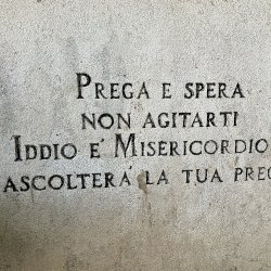 Az alkotást először a Gargano-félszigeten fekvő San Giovanni Rotondóban, a Convento, santuario di San Pio di Pietrelcina kolostorban állították ki, majd a közeli Vico del Garganóba került.