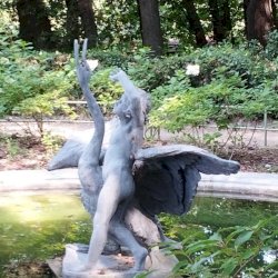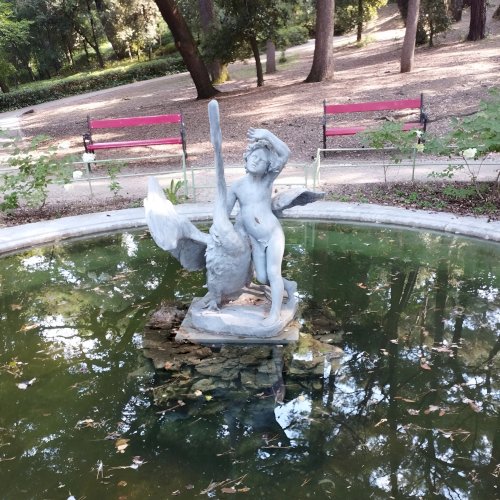 A mű egy másolat, eredetije 1836-ban készült, és a Berlin mellett található Charlottenburgi kastély parkjában található, amely III. Frigyes Vilmos porosz király tulajdonában állt. Alkotója Theodor Kalide (1801-1863) német szobrász. [1] A másolat 1863-ban készült, August Kichselt bécsi műhelyében. A mű Ferdinánd Miksa uralkodó jóvoltából került a kertbe. [2]