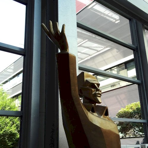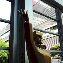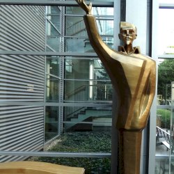 Sajnos mindebből nem derül ki, mikor készült el a díj kinagyított változata, ami az aulában, az egész ügyet reprezentálva áll és amit most mutatok.
