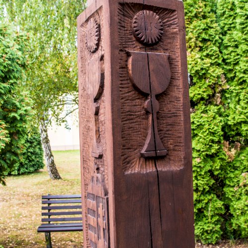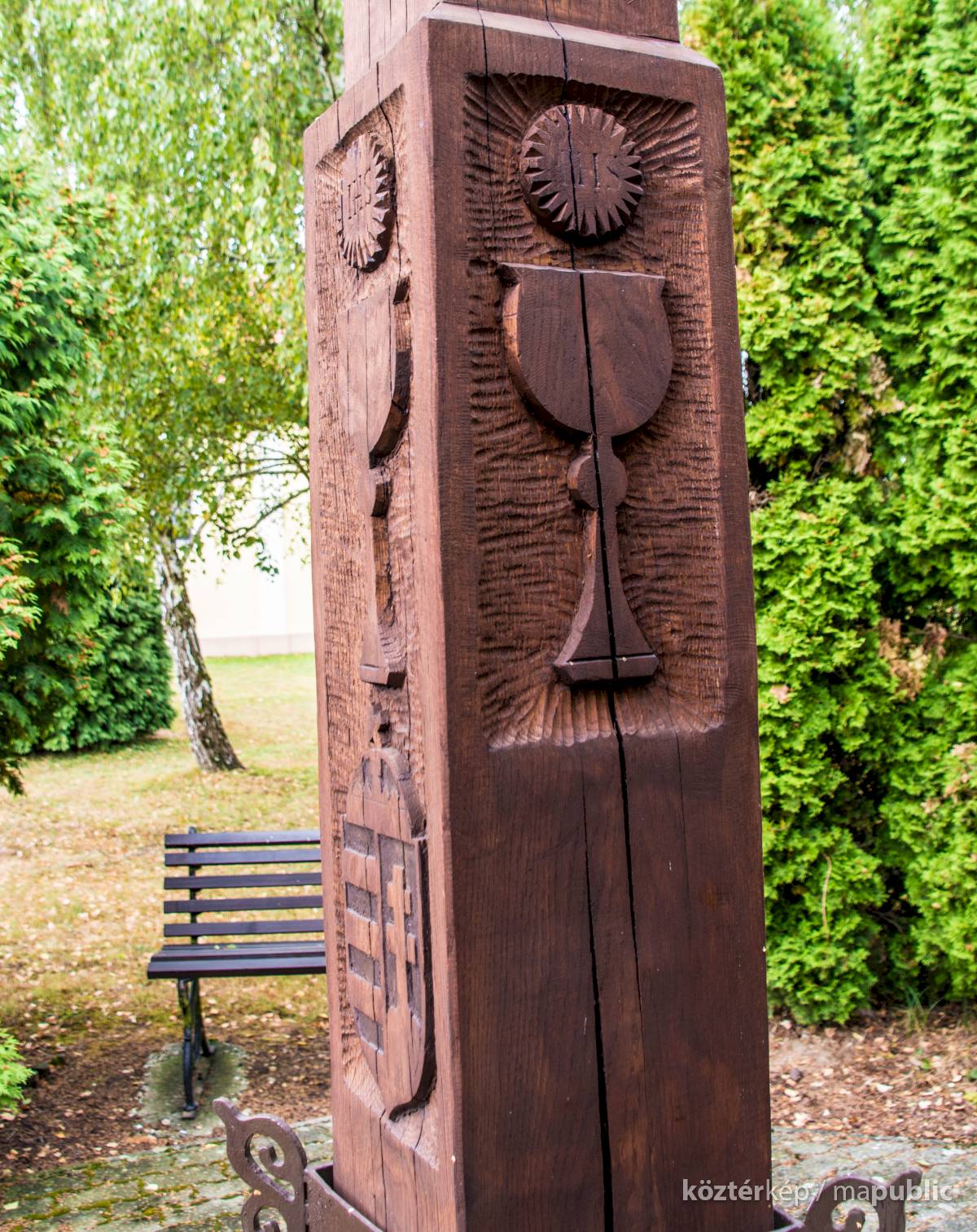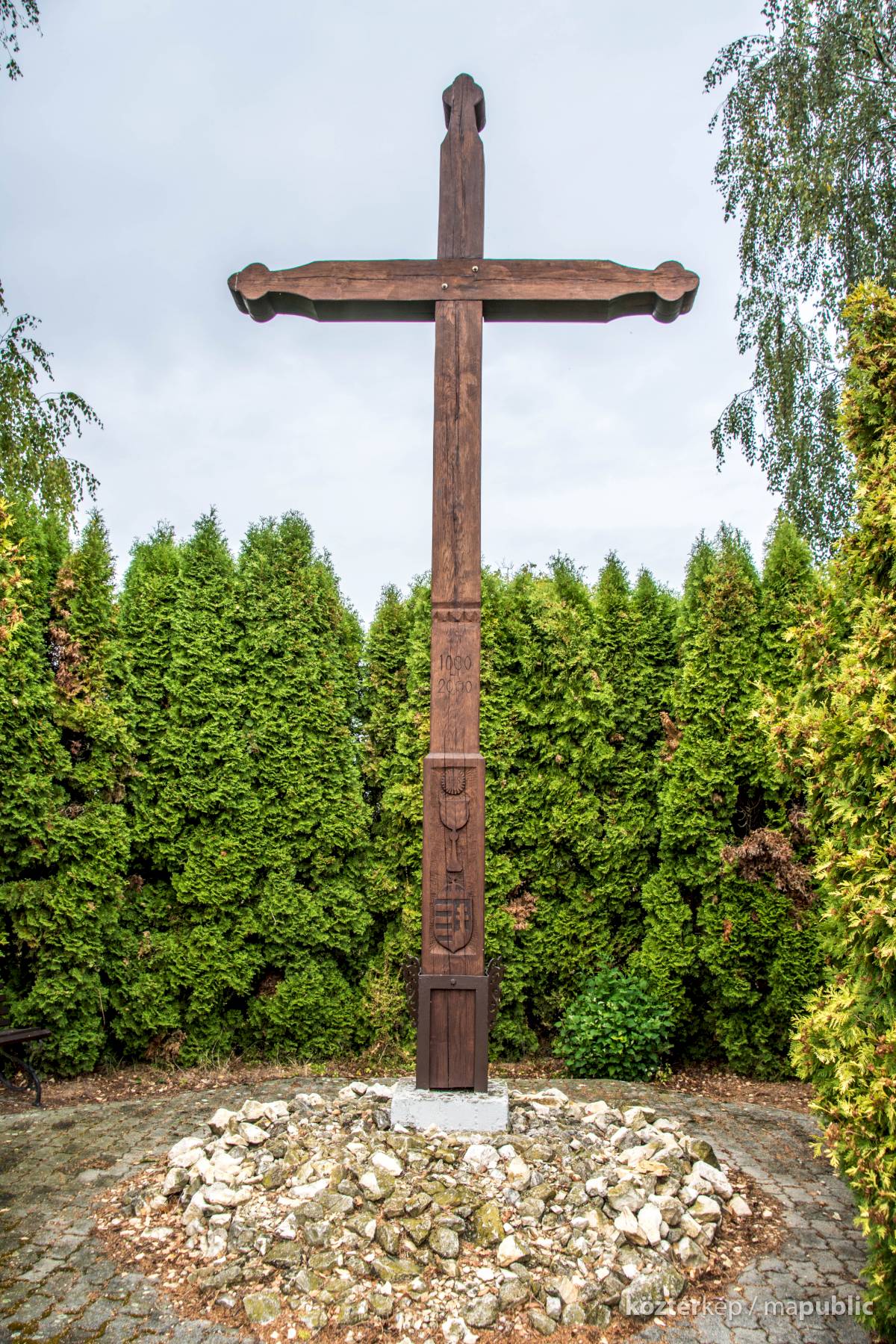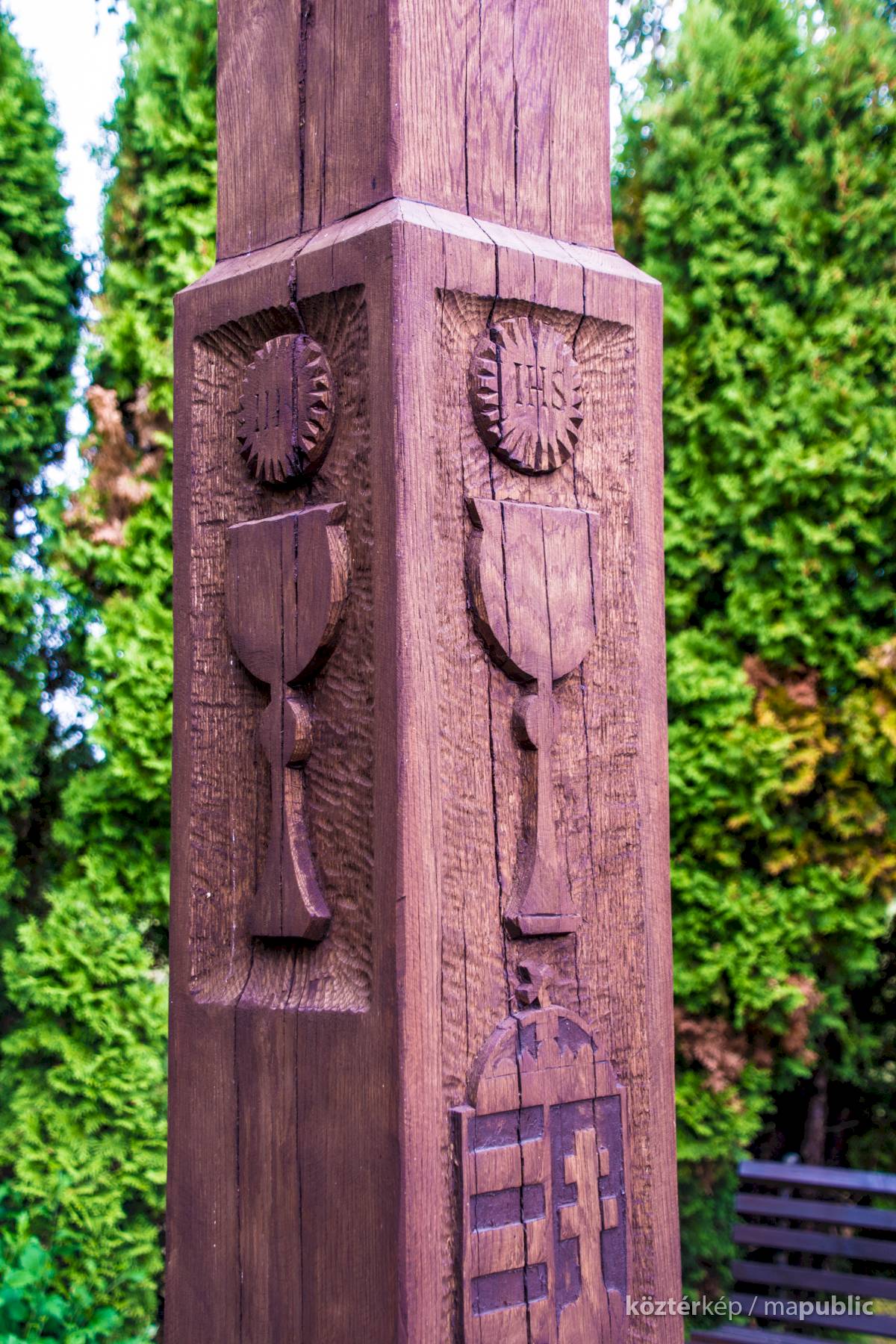 A millenniumi keresztet domborművek is díszítik.