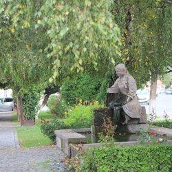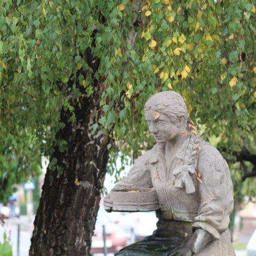 A szoborral díszített szökőkút a város közepén két nyírfa között áll, ami nem véletlen. Az önkormányzat több pályamunkát megtekintett, és végül Demeter István szobrászművész [2] alkotását valósította meg. Tusnádi köböl készült.