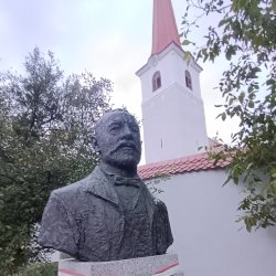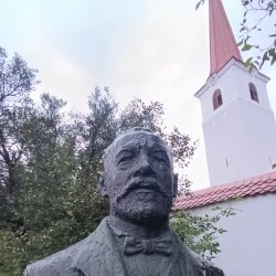 Erdélyben tett utazásom során találtam rá, a község református temploma melletti kis parkban, a politikus mellszobrára. A szakadó eső ellenére próbáltam lefotózni. A gránit talapzaton látható, az életnagyságnál nagyobb alkotás, bronzból készült. Blaskó János szobrászművész formázta meg a képviselő urat. Elegáns bajszos úriembert láthatunk, öltönyben csokornyakkendővel. A talapzaton a név és titulus, valamint az alkotói szignó, és az avatás évszáma olvasható.