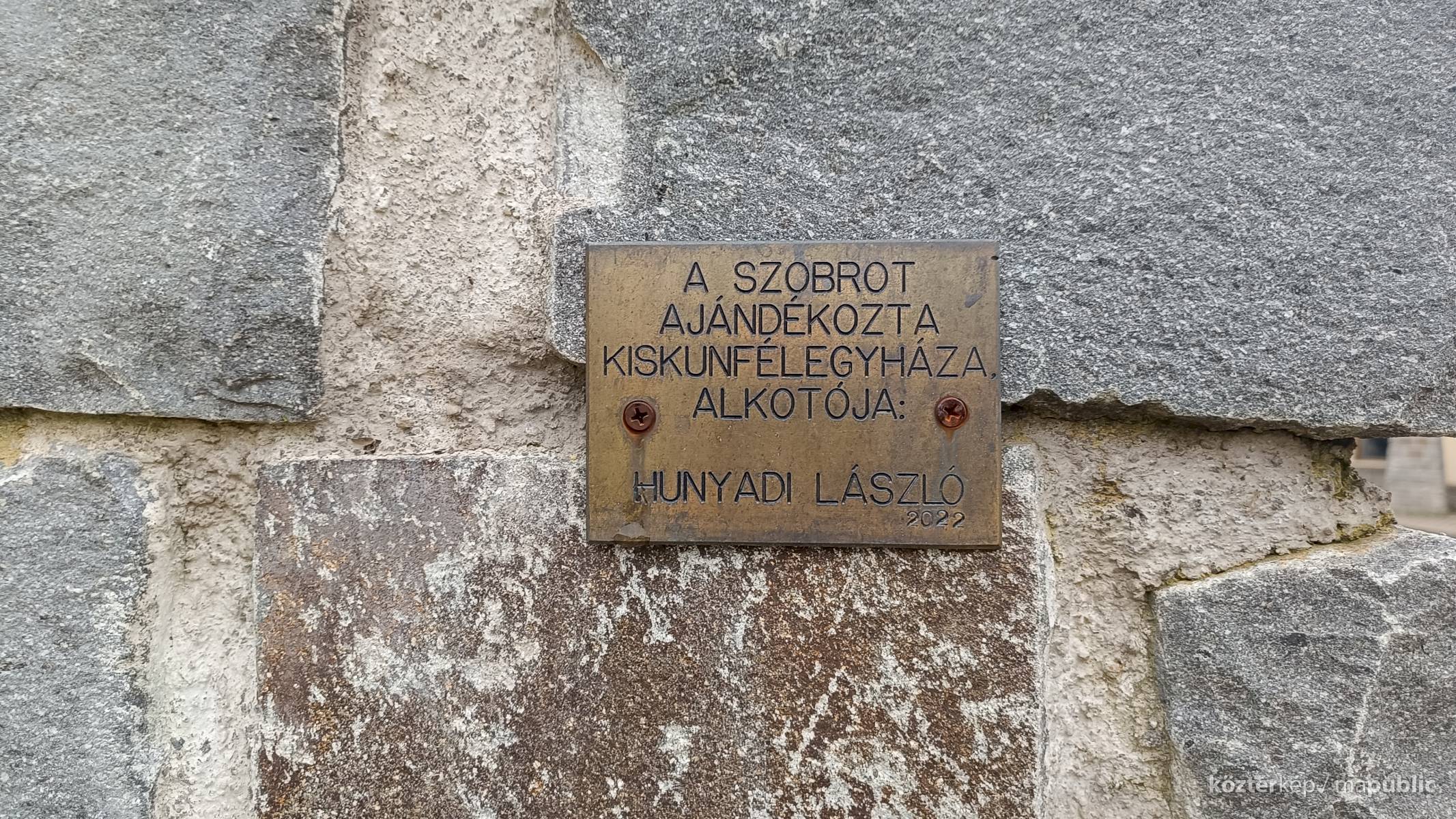 Kis beton talapzaton, gránitkockákból kialakított posztamensen látható, az életnagyságnál nagyobb bronz mellszobor. Hátul réz tábla hirdeti az adományozást, a szobor hátsó rászén alul az alkotói szignó olvasható. A szobor egy 2002-ben készült alkotás egyik példánya, Bugacon és Lajosmizsén látható. (lásd kapcsolt műlapok)