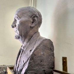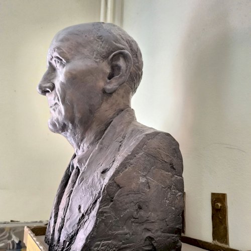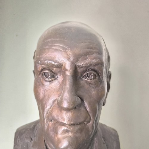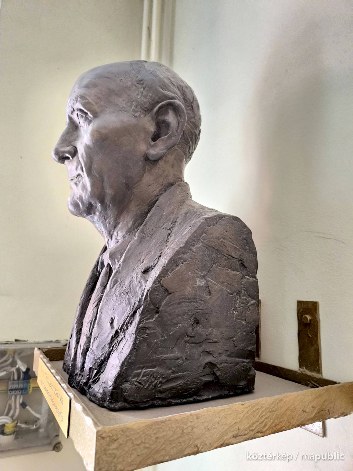 A büszt Lelkes Márk munkája. Szokásos precizitásával készült a portré, életnagyságú méretben. Az idősödő orvost látjuk, élete delelőjén. Mosolygós szája, kissé ráncolt homloka barátságossá teszi. Szeme értelmet sugároz, amit tökéletesen kiegészíti öltözéke is az ing a nyakkendő és az öltöny. A mellszobor egy egyszerű falra erősített tartón látható, kis táblával az elején életrajzi adataival illetve foglalkozásával.