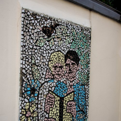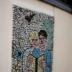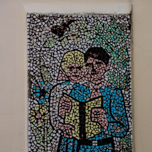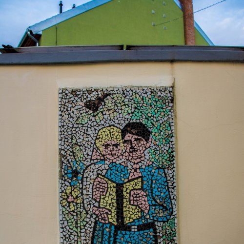 Az Önkormányzati Hivatalnál, az iskola bejáratánál a homlokzatot díszítő mozaik a könyvek fontosságára hívja fel a figyelmet.