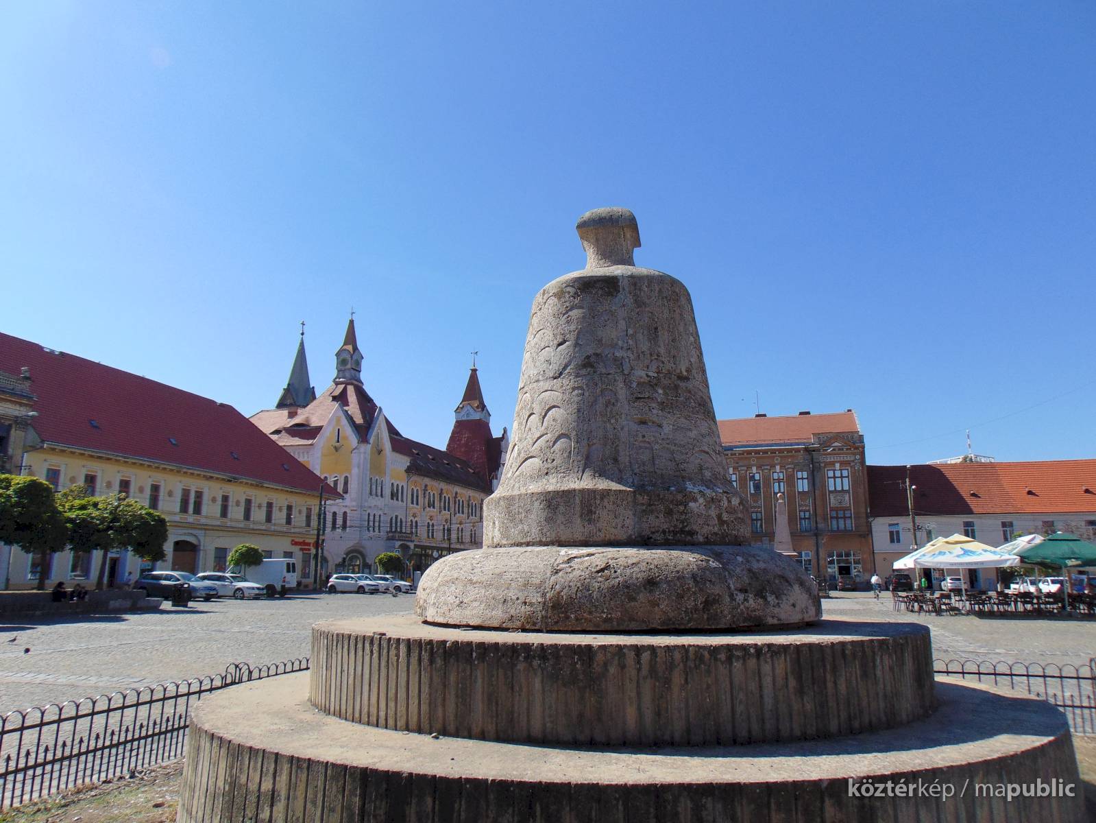 A travertinből készült, harang formájú emlékmű 3 méter átmérőjű és 3,5 méter magas, lépcsős beton talapzaton áll. A harang jelképe a múltban a nép összegyűjtésére, küzdelemre szólított, itt azonban „kővé dermedt, néma harangként” jelenik meg, amely a diktatúra erőszakával szembeni megrendülést, ugyanakkor a szabadságért hozott áldozatot szimbolizálja. [3][4]