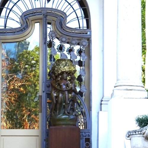 Jelenleg a villa lépcsősora felett, a bejáratnál áll.