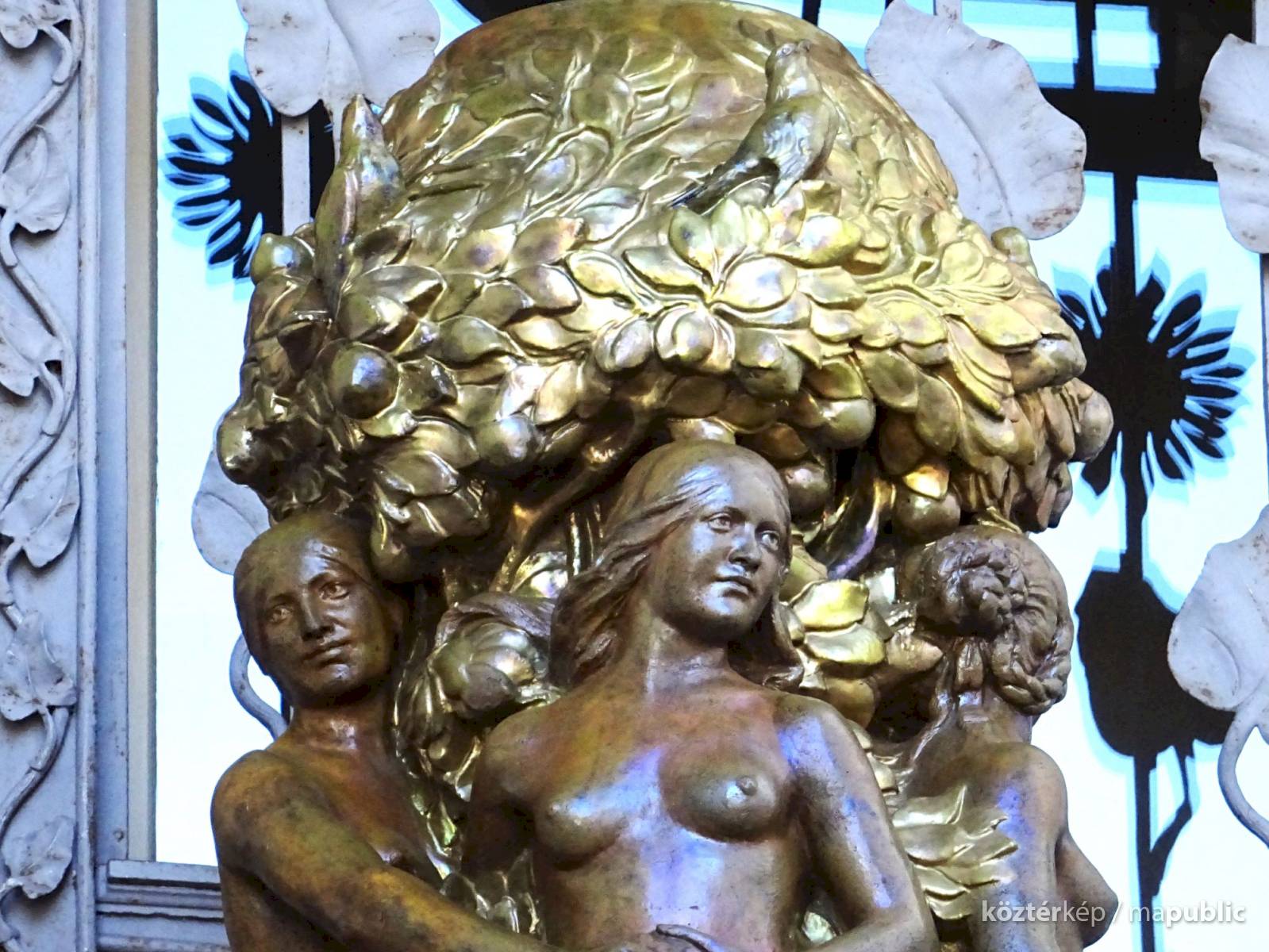A kiemelkedő alkotáson öt hölgy táncol körbe egy gránátalmalmafát. A nyilatkozat szerint az ábrázolás szimbolikus jelentésű: "...a szépséget, a termékenységet, a boldogságot, illetve a gazdagságot..." jeleníti meg.