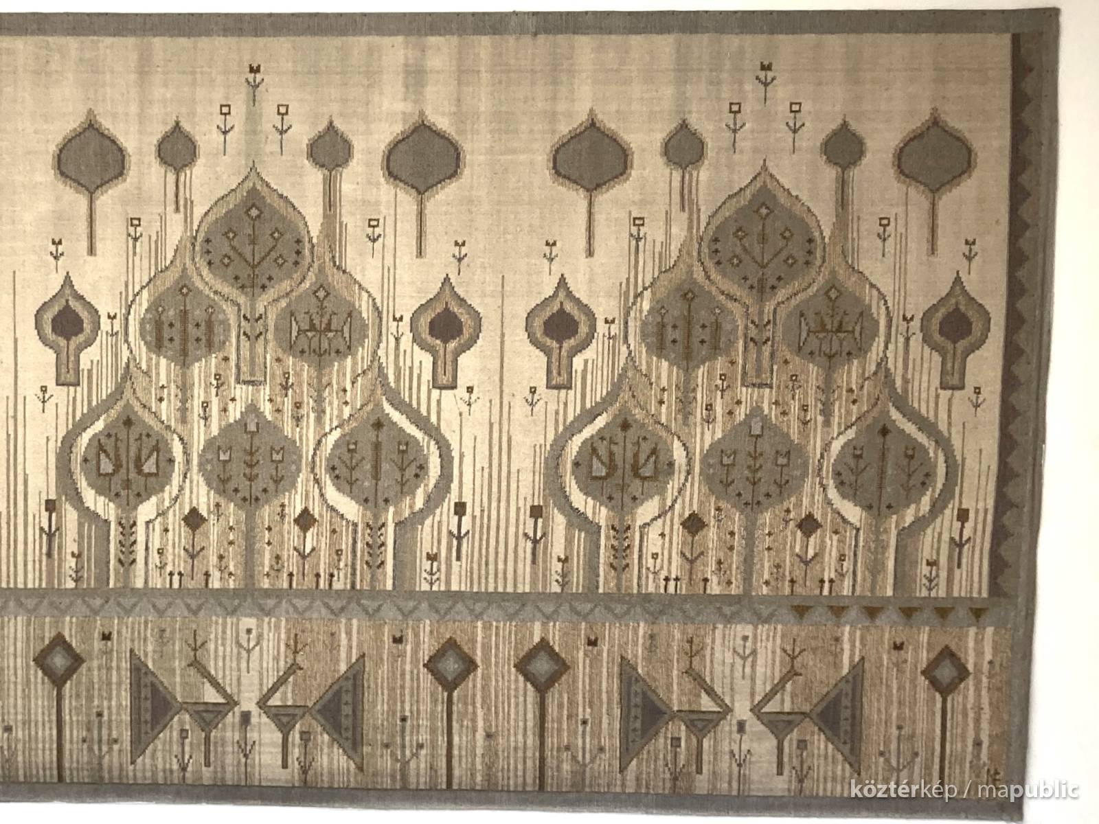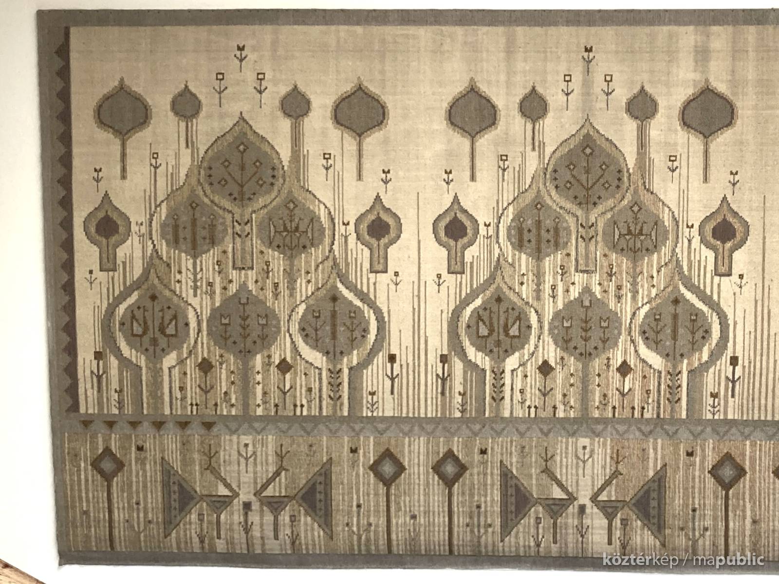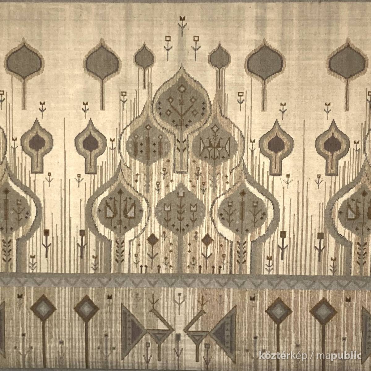 Németh Éva weboldalán a munkái között található egy kisebb méretű (harmad akkora) azonos motívumokat ábrázoló és ugyanilyen elrendezésű kézzel szőtt gyapjú szőnyeg, mely a 80-as években készült sorozatgyártásban. Ebből adódóan mertem megjelölni a készítési időpontot. (lásd adalék kép)