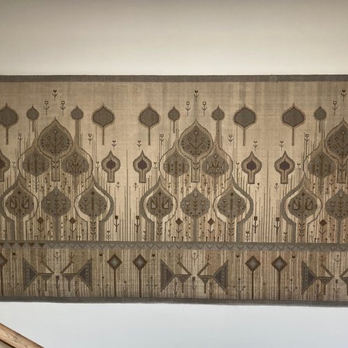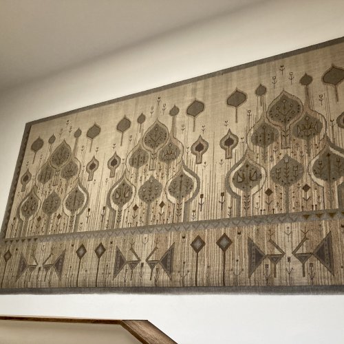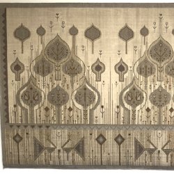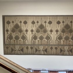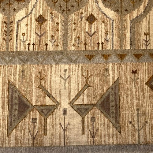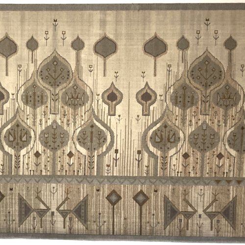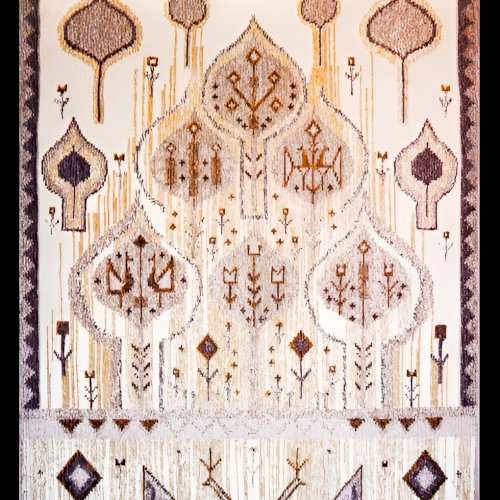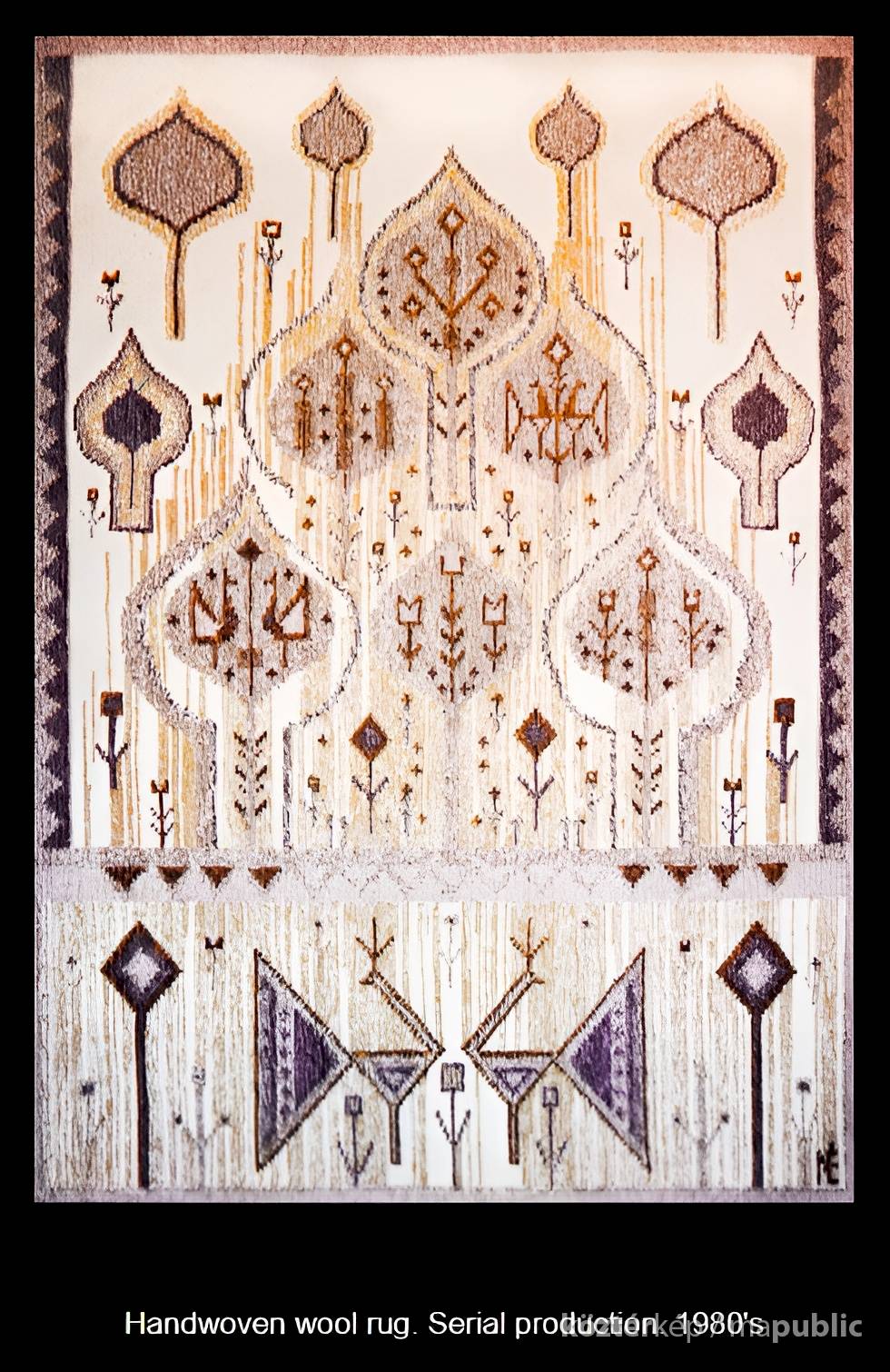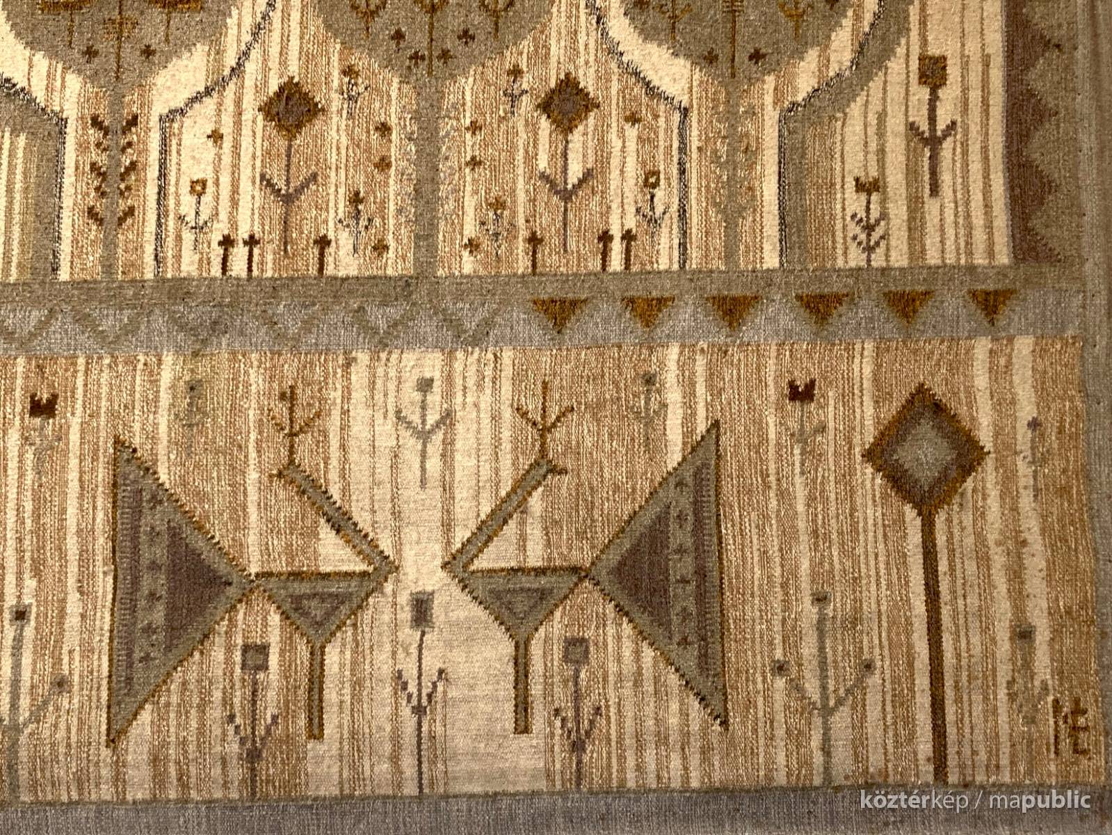 Németh Éva weboldalán a munkái között található egy kisebb méretű (harmad akkora) azonos motívumokat ábrázoló és ugyanilyen elrendezésű kézzel szőtt gyapjú szőnyeg, mely a 80-as években készült sorozatgyártásban. Ebből adódóan mertem megjelölni a készítési időpontot. (lásd adalék kép)