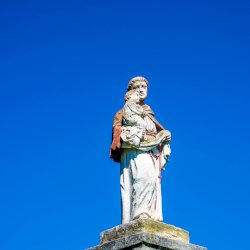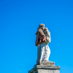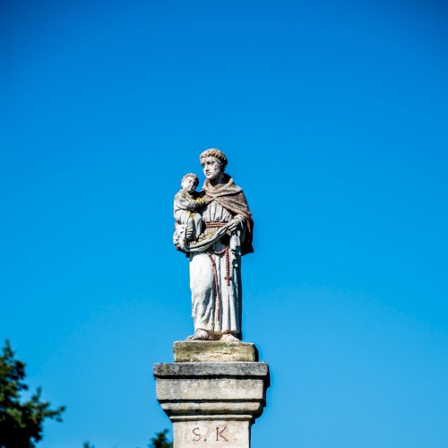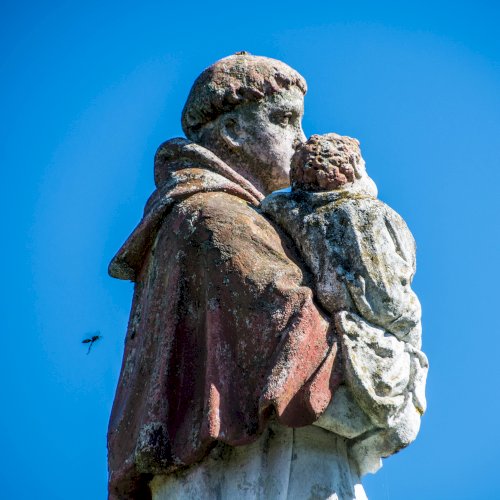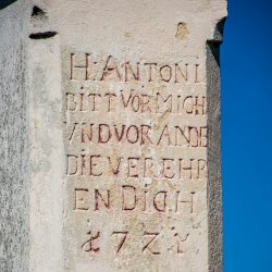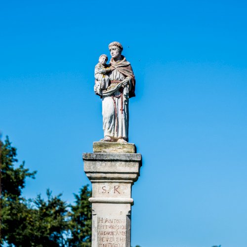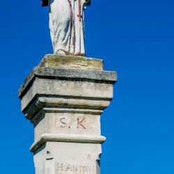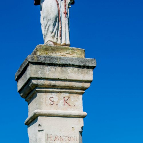 Az élszedett talapzat felirata szerint 1771-ben állították a festett szobrot.
