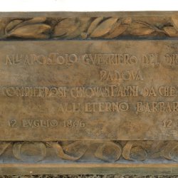 Nyilvánvalóan utólag került oda, aminek megvan a magyarázata is, hisz 1866 július 12-én az Olasz Királyság és az Osztrák Császárság között zajló harmadik olasz függetlenségi háború egyik kulcsfontosságú eseménye történt: Padova (és egész Veneto tartomány) ekkor szabadult fel az osztrák uralom alól, és ezzel Olaszország részévé vált. Ennek az eseménynek az 50. évfordulójára készült a felirat.