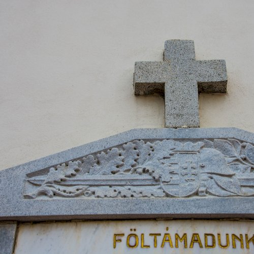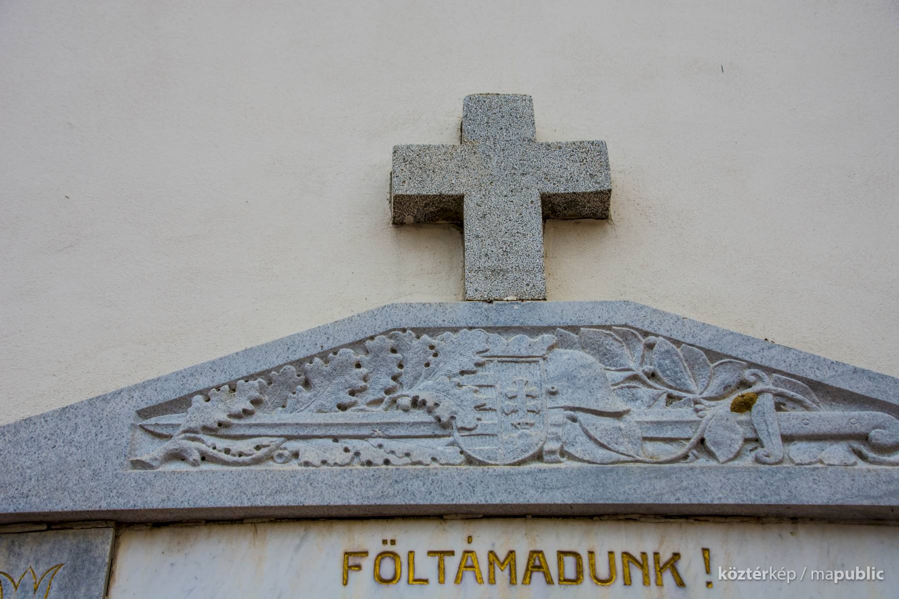 Az évszám (1914-1918) mellett felirata: „Föltámadunk” / „A ti hulló véretek váltotta meg a hazát.”