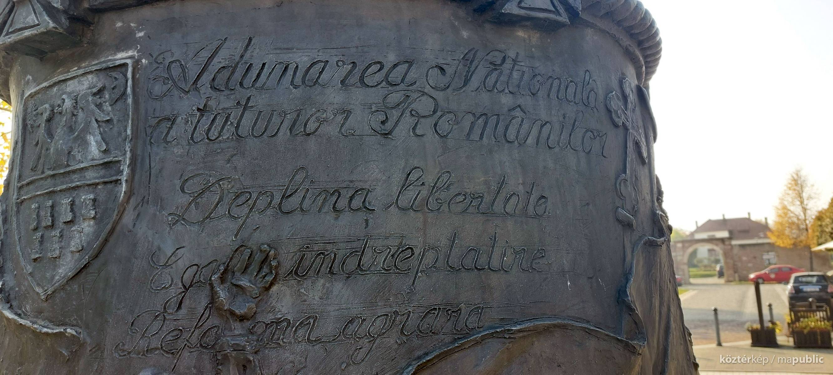 [2] A szoborról - https://alba24.ro/rezolutia-marii-uniri-de-la-1918-scrisa-gresit-pe-clopotul-din-piata-cetatii-tara-ungureasca-inlocuita-cu-tara-romaneasca-256980.html (román nyelvű)
