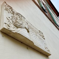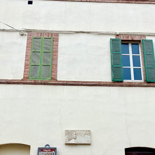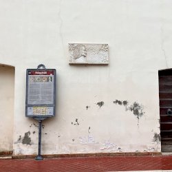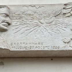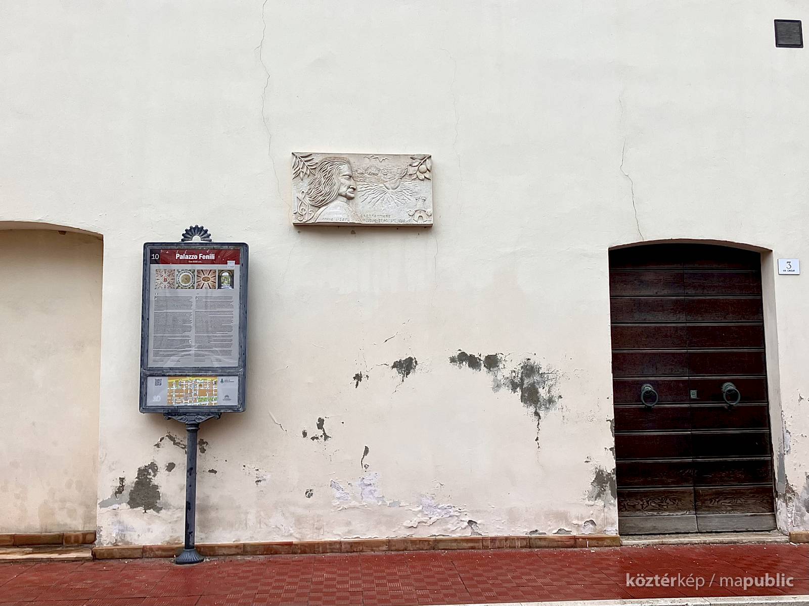 Vendéglátói házának bejárata mellett ma egy mediterrán tengerparti vidéket felidéző márványtábla őrzi emlékét: