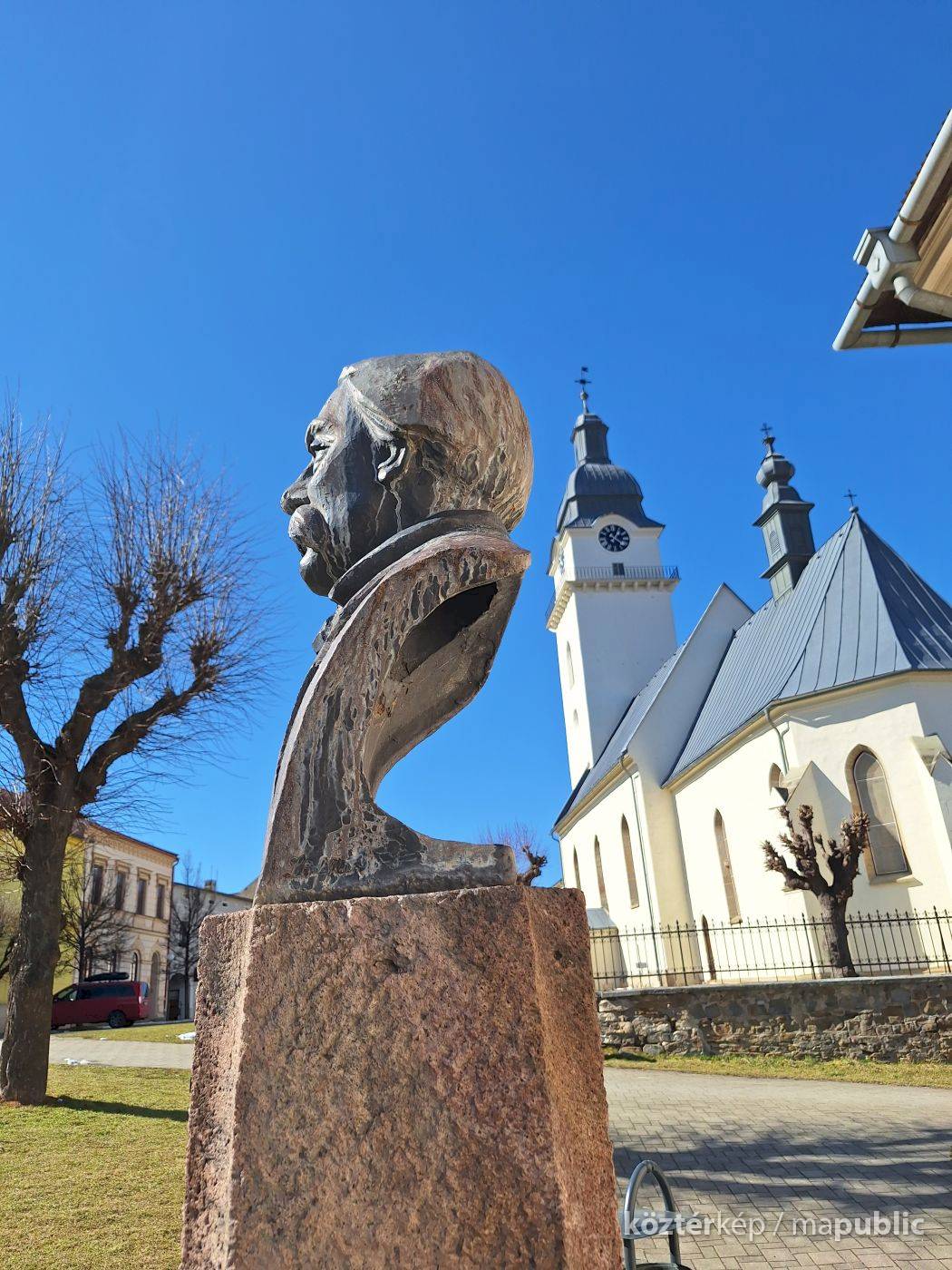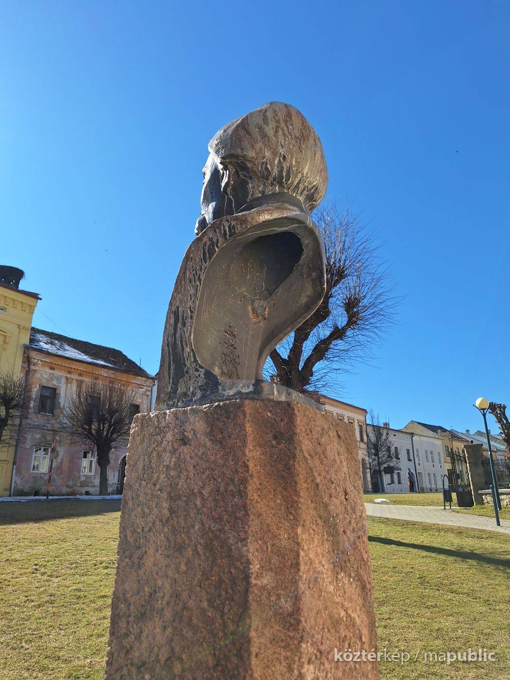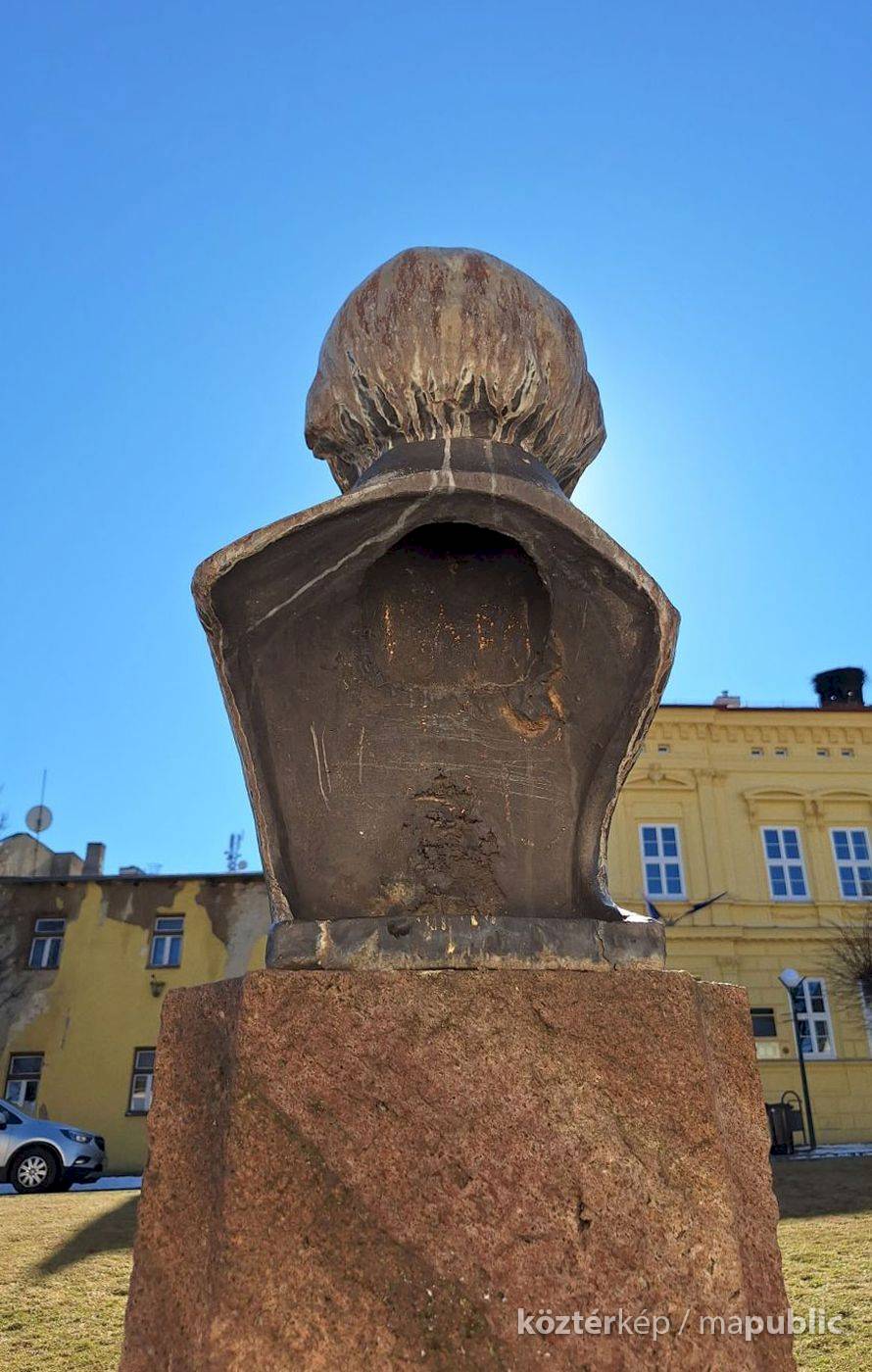 Löffler Béla kassai szobrász alkotta büsztje a múzeum előtt áll.