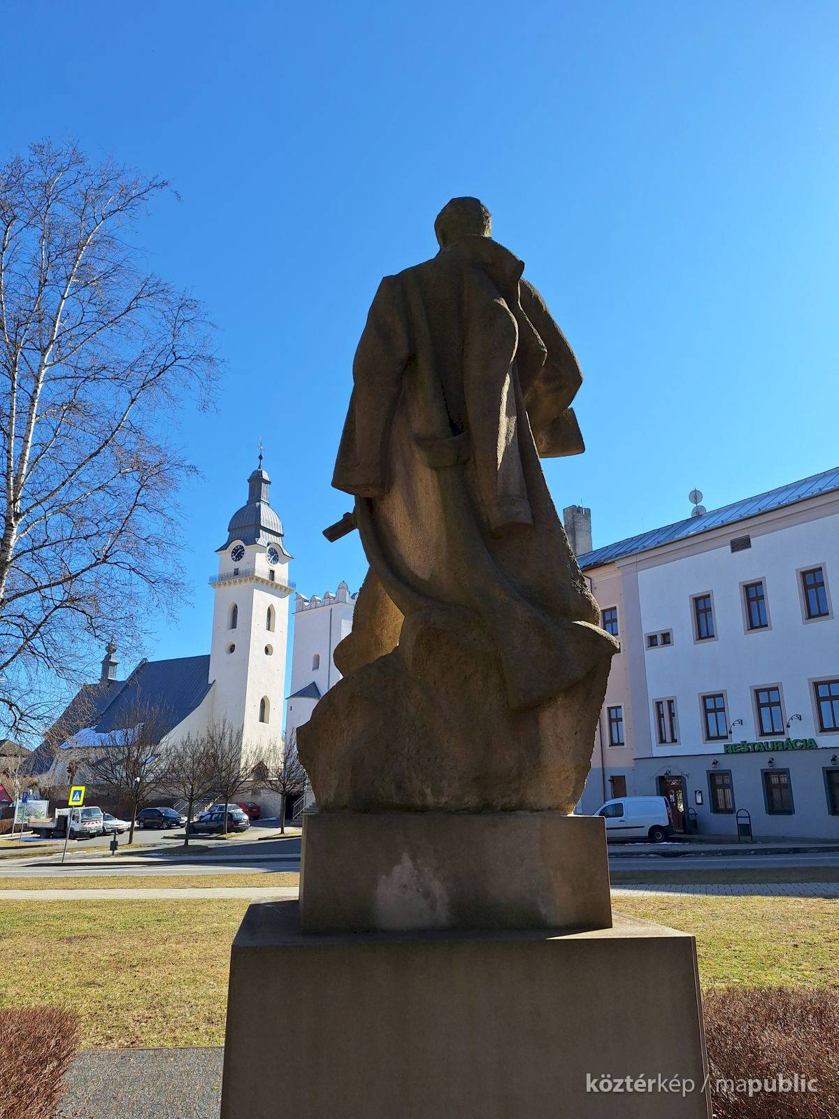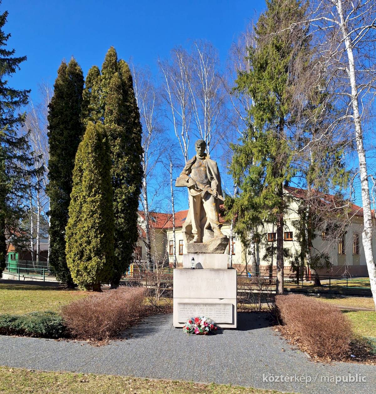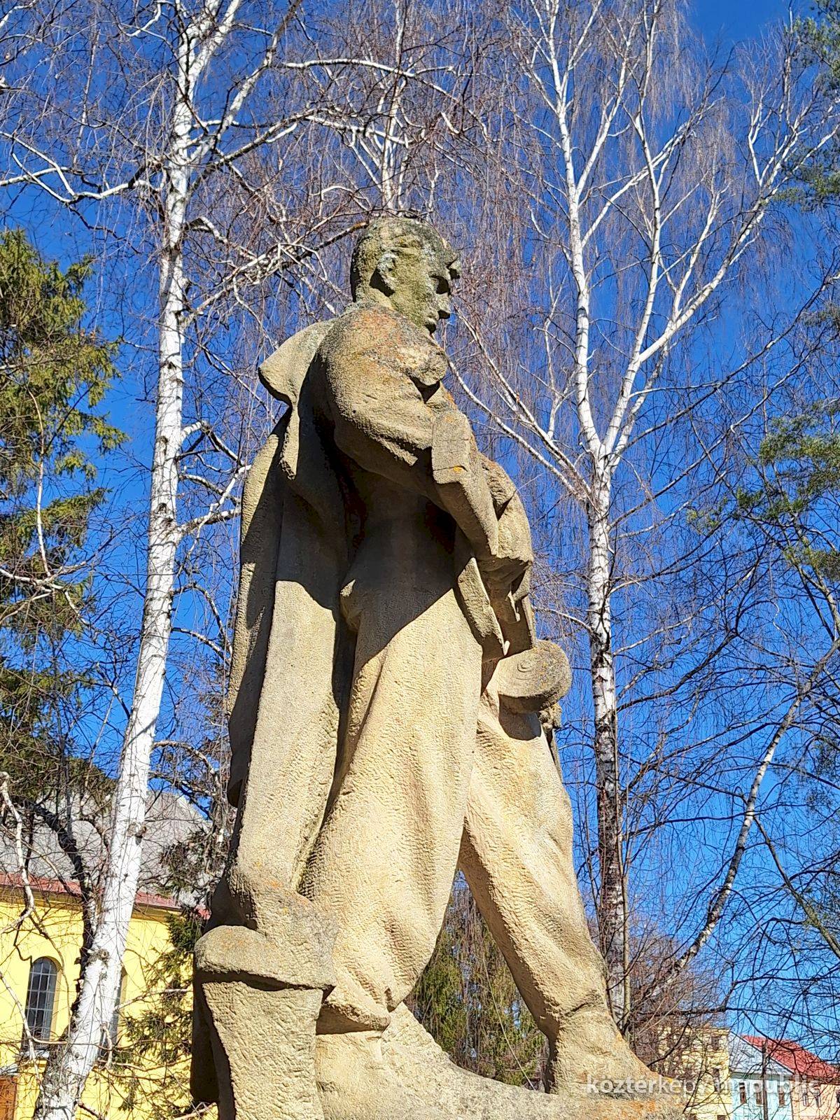 Rendezett kisváros gondozott parkjában méltó helyen áll a szobor.