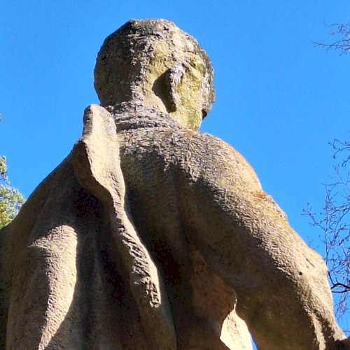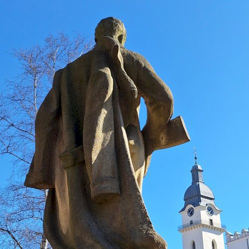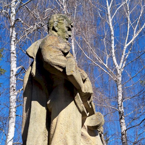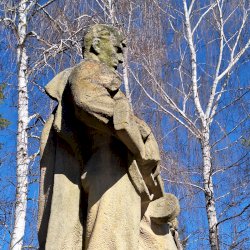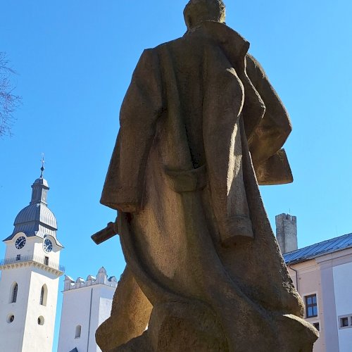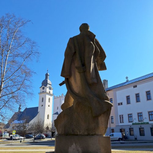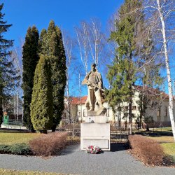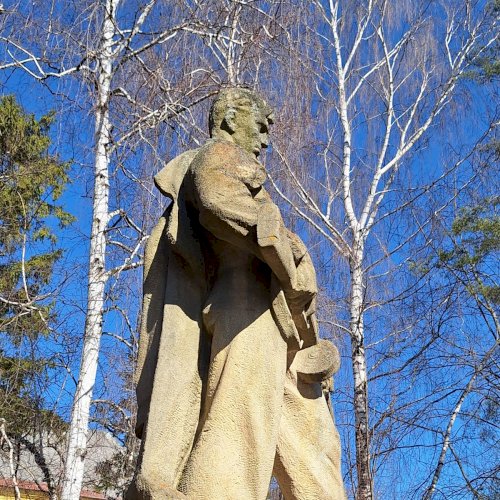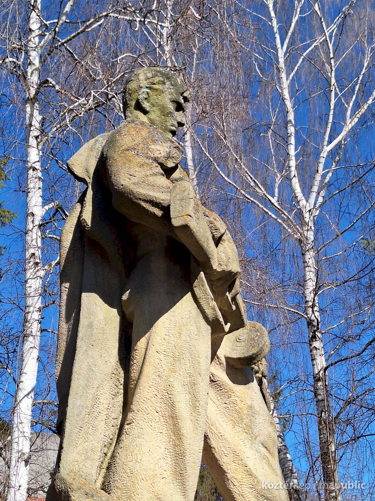 Rendezett kisváros gondozott parkjában méltó helyen áll a szobor.