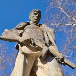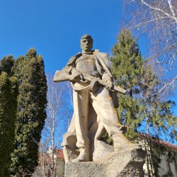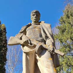 Racskó Béla szolnoki születésű szobrász életnagyságnál nagyobb Partizán szobrával találkozhatunk a város központi parkjában.