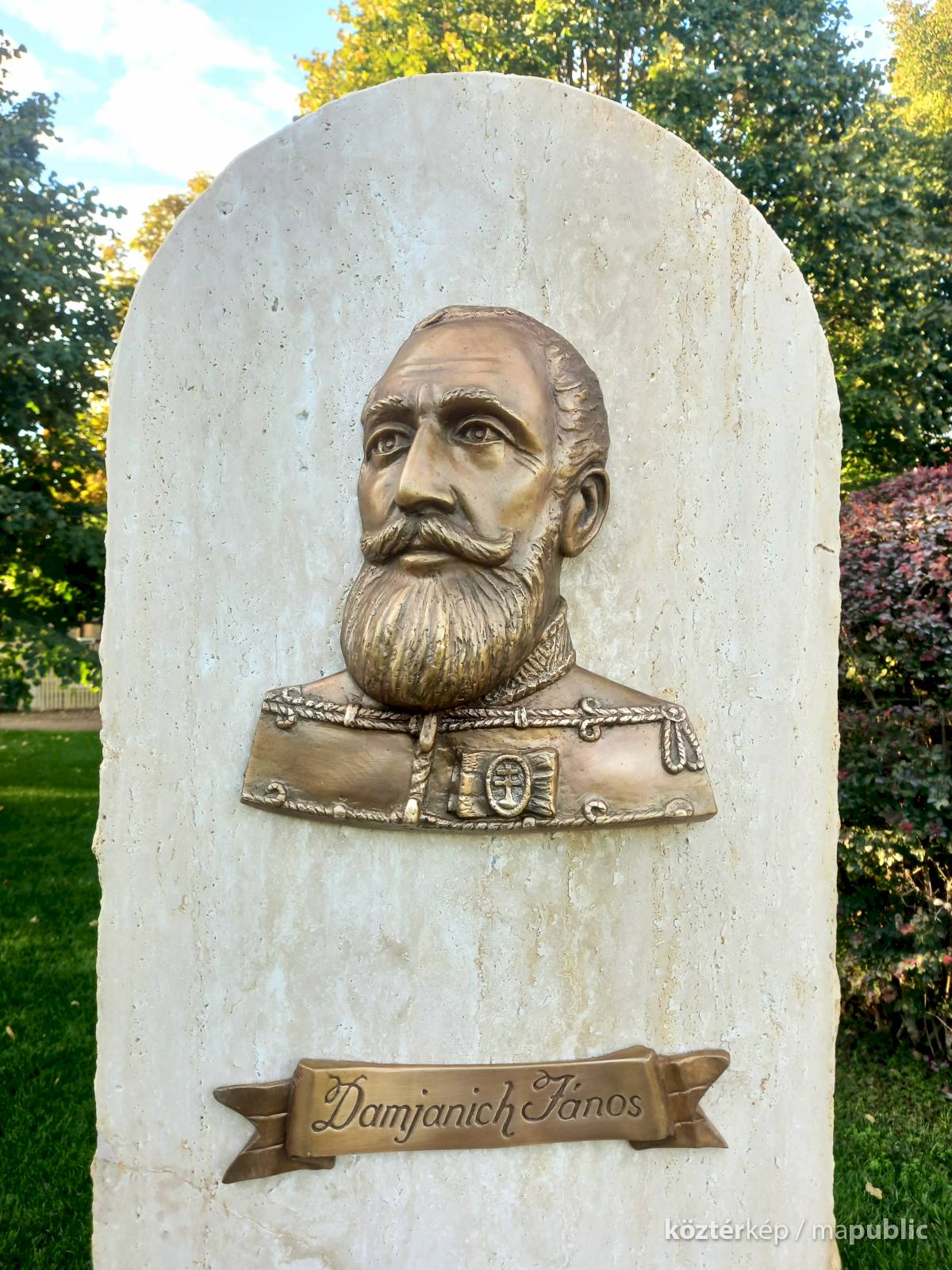 A 13 aradi vértanú és mártír miniszterelnőkünk tiszteletére állított emlékmű félkörben elhelyezett faragott kő oszlopokra elhelyezett broz domborművekből áll. Az emlékmű előtti burkolatban emléktáblát helyeztek el is nevesített alkotókról és az emlékmű állítójáról. A bronz domborművek mindegyikén látható az alkotó szobrászművész szignója.