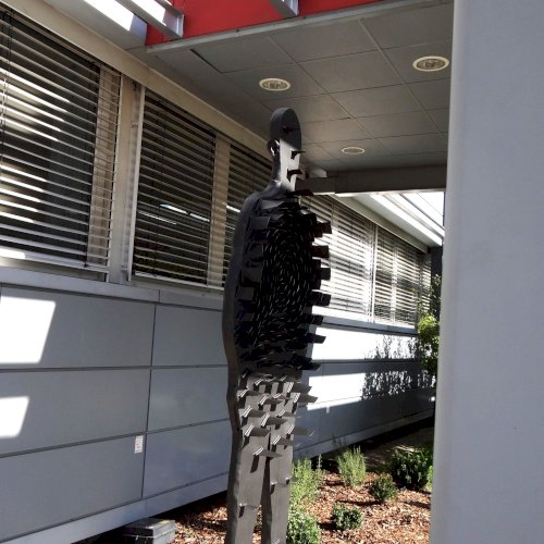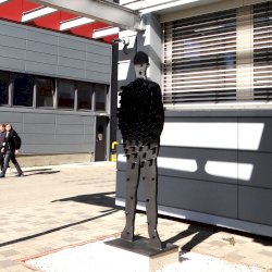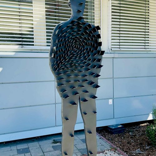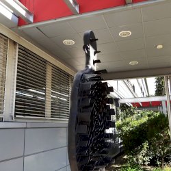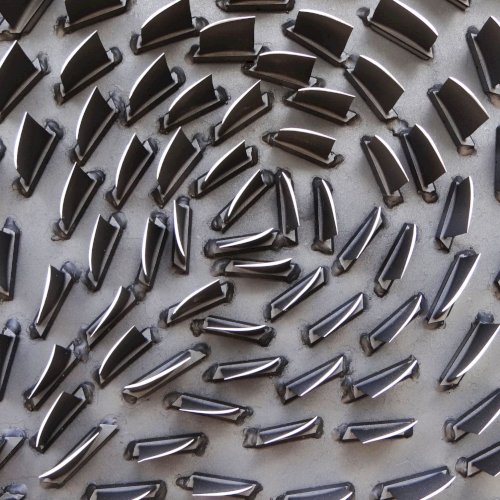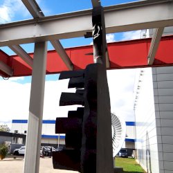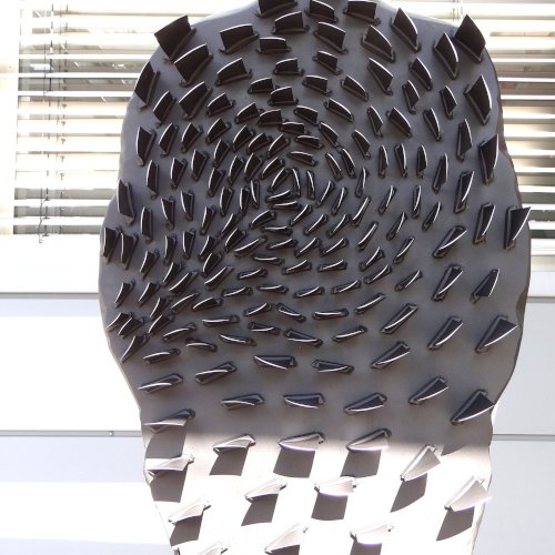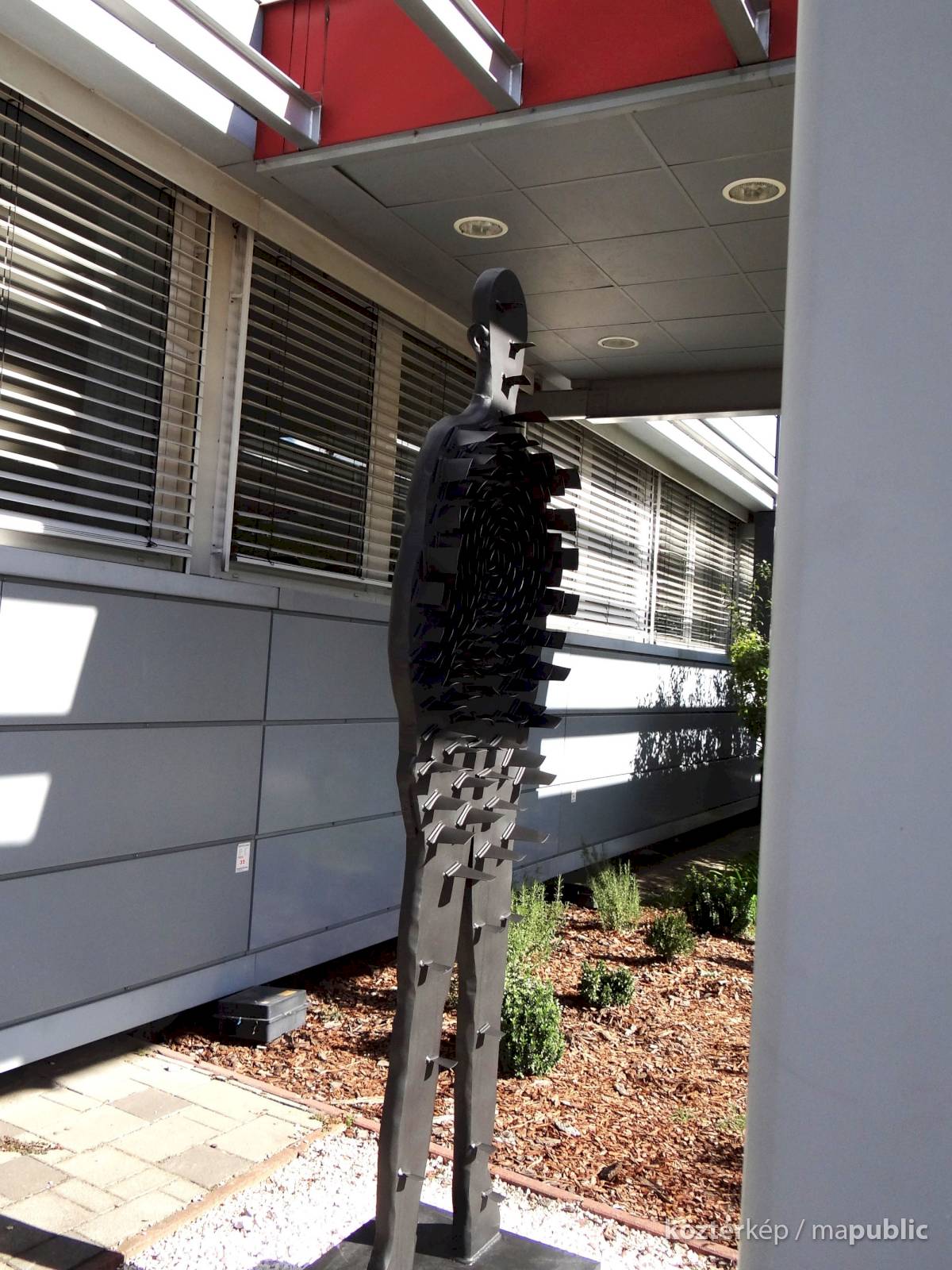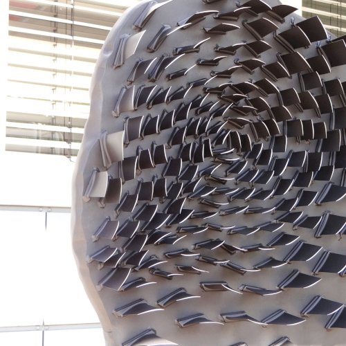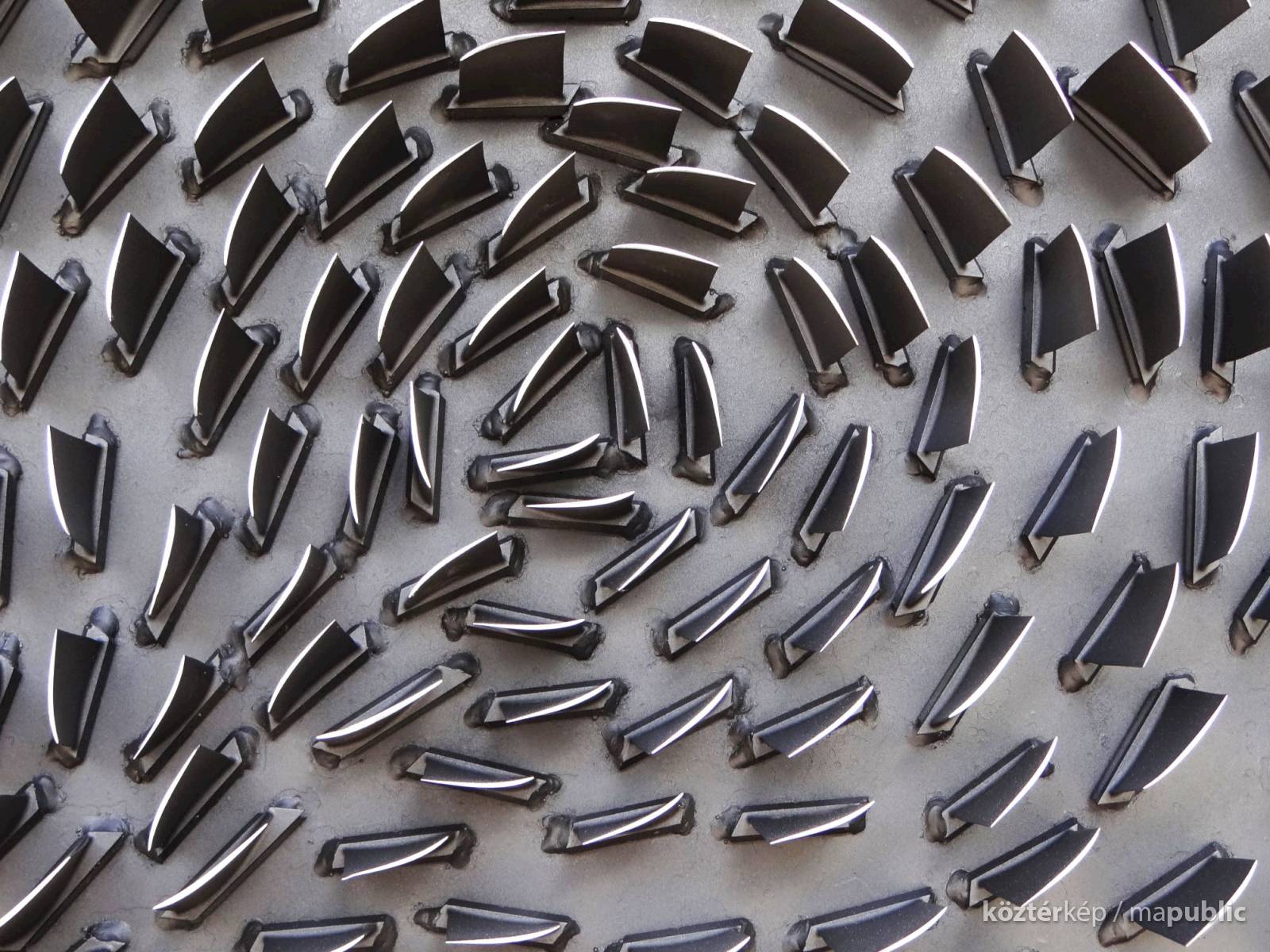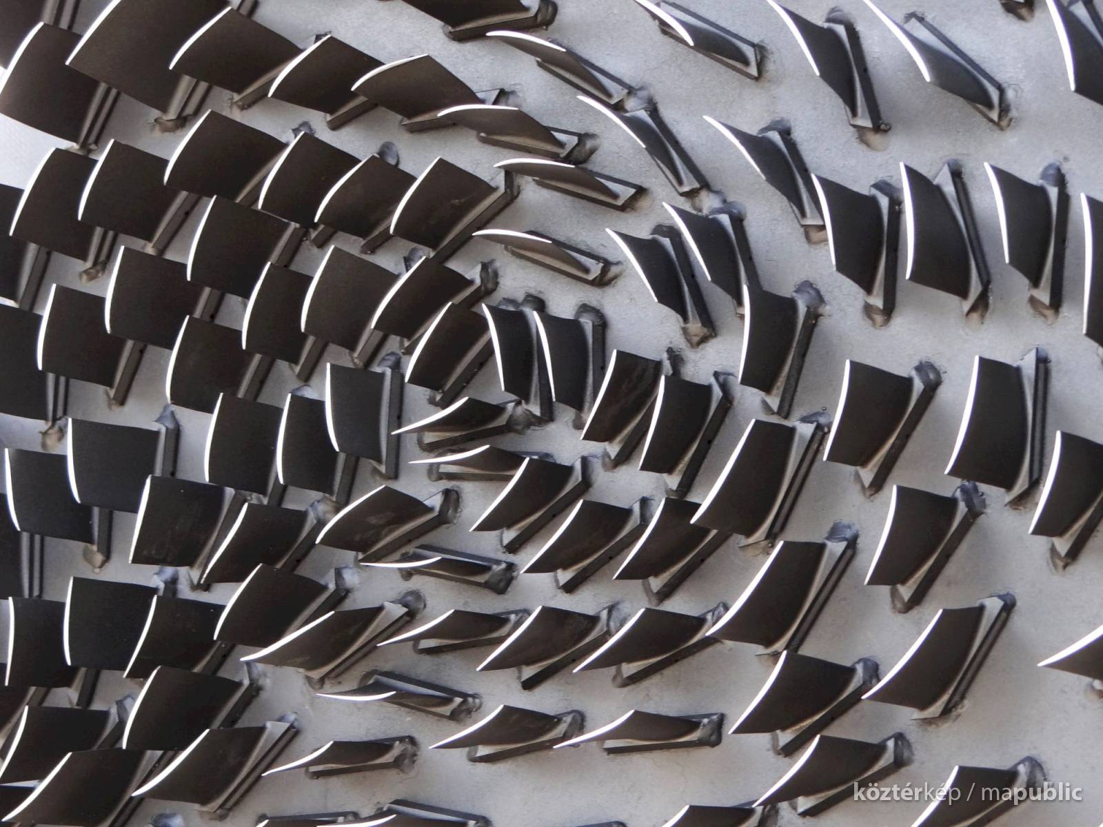 A felhasznált fő elem a cég által gyártott, világszínvonalat képviselő turbinalapát. "A mérnöki zsenialitást reprezentáló tárgynak elhelyezésével többféle asszociáció jön létre. A szoborban megjelenik az örvény, ujjlenyomat, a labirintus motívuma..." [2]