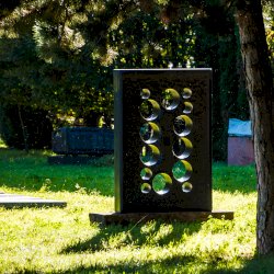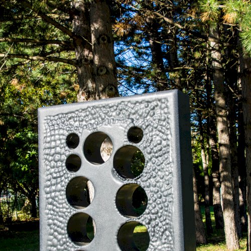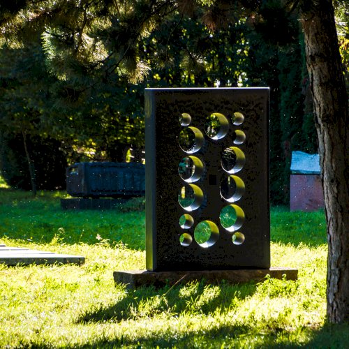 A művész pecsenyédi,- nyitott, bárki által látogatható kertjében álló alkotás 1986-ban készült.[4]