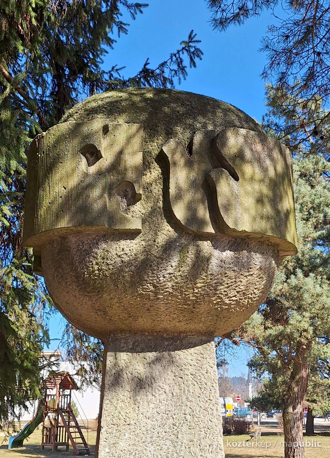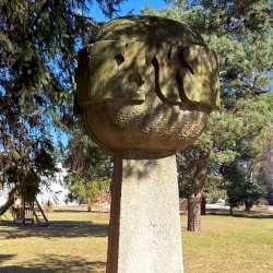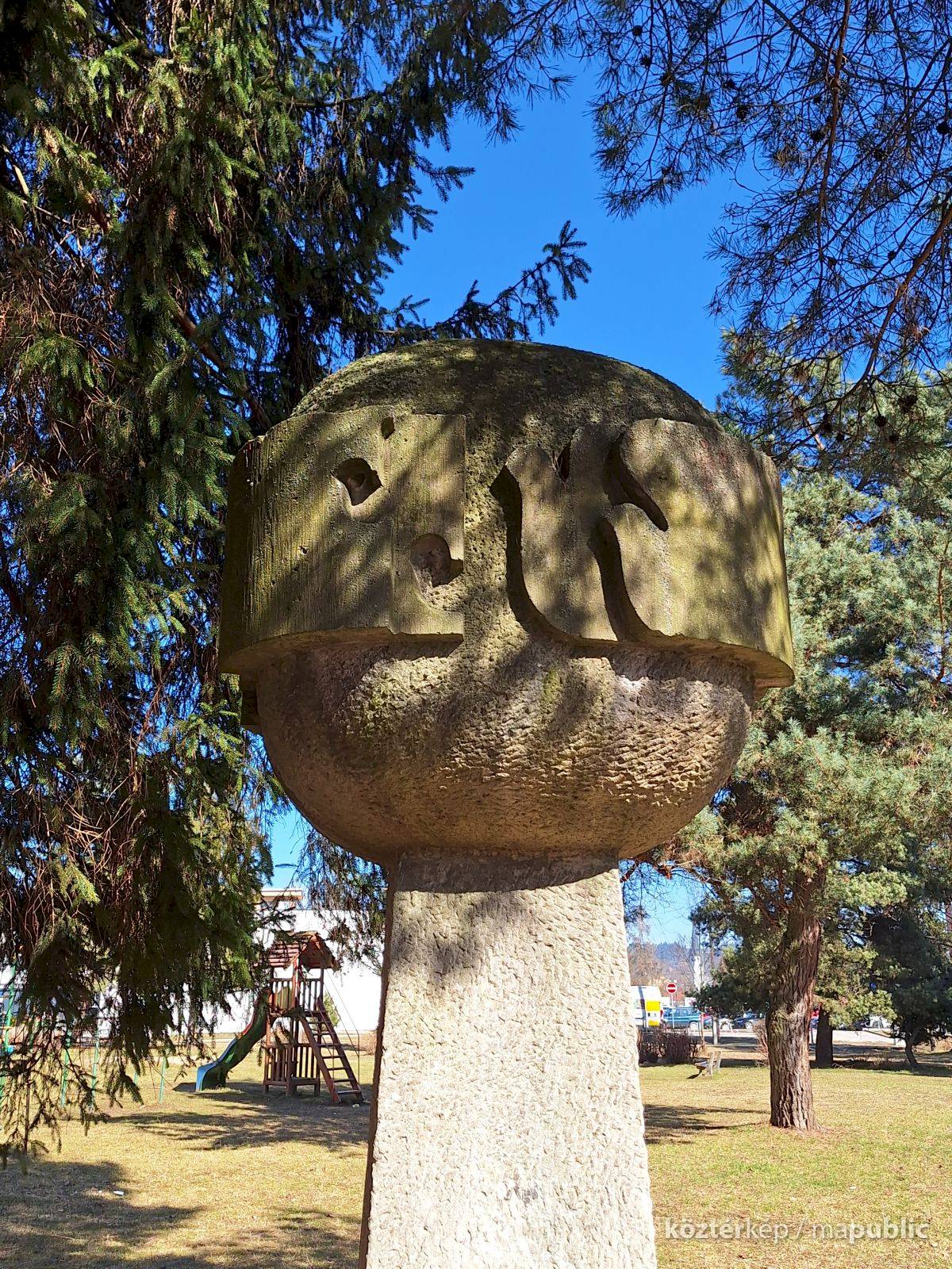 Lakótelepen, játszótér közelében áll Szigeti Miklós abaújszántói születésű szobrász homokkőből kifaragott Béke térforma alkotása. Beton talapzata magas csonkagúla formájú, melyre 1 méternél nagyobb átmérőjű gömböt formázott a szobrász, amin 3 pár galamb fríz formában fut/repül körbe. A pozitv, kiemelkedő formákat a negatív elemek követik.