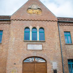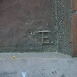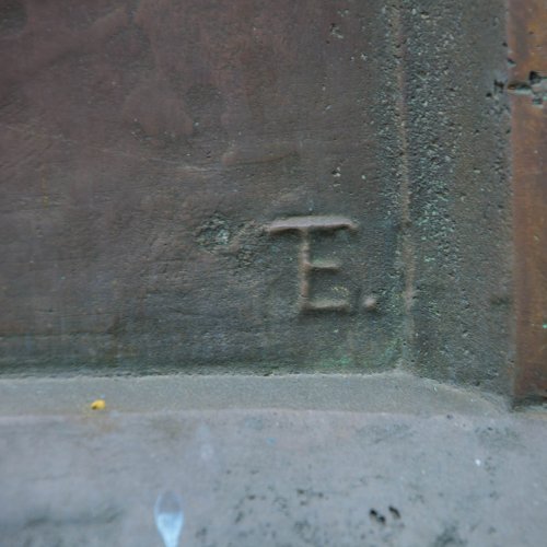Az épület homlokzatán álló domborműves bronz cégtábla szignóval jelzett.