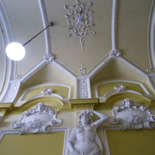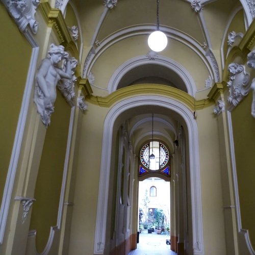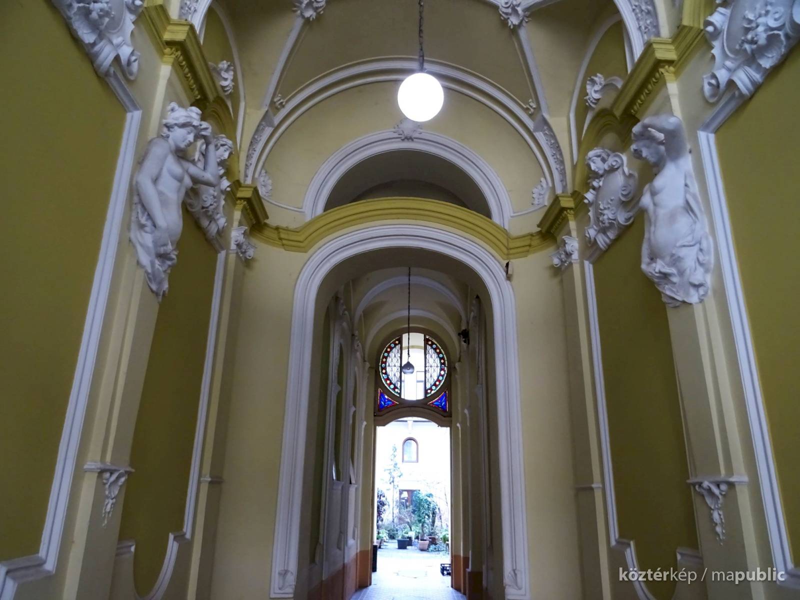 Az izgalmas felfedezés tehát a tulajdonos személye, aki ugye véletlen szobrász. Az is lehet (bár semmit nem találtam, ami alátámasztja), hogy ő maga készítette a kapualj díszítését. Minden esetre logikusnak tűnik, hogy minimum az igény tőle származik, a részleteket viszont homály fedi.