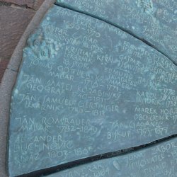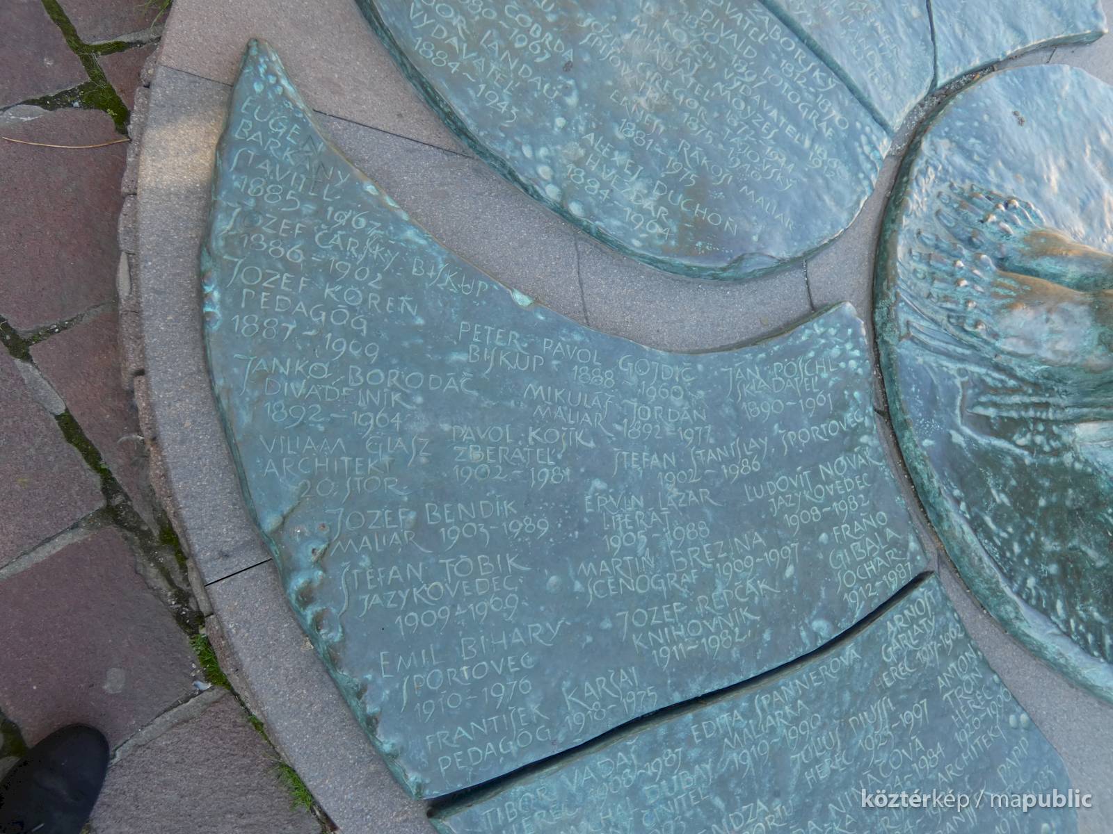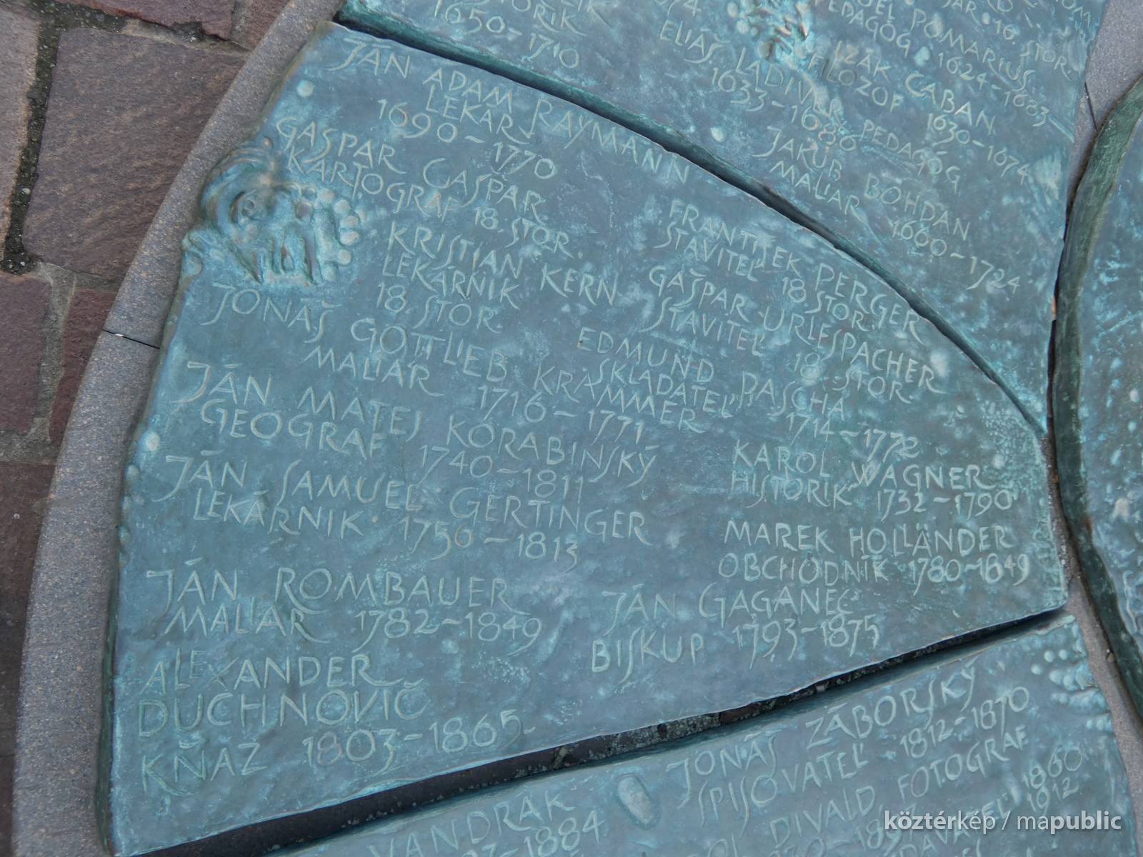 A kör alakú talapzat cikkelyein 16-20. századi híres eperjesiek neve és életrajzi adatai olvashatók. A felsorolt nevek között találunk 1. tudósokat és filozófusokat (pl. Ján Bayer, Izák Caban), 2. orvosokat, gyógyszerészeket és pedagógusokat (pl. Ján Weber, Samuel Pomarius), 3. művészeket és festőket (pl. Jakub Bohdan, Ján Rombauer), írókat, papokat és zeneszerzőket, valamint 4. történészeket, feltalálókat, sportolókat, fotósokat, színészeket és építészeket. A közös bennük, hogy mindannyian kötődtek valahogy Eperjeshez, ott születtek, éltek, tanítottak, alkottak vagy a város hírnevét öregbítették. Néhány példa a 17. századi személyekből: