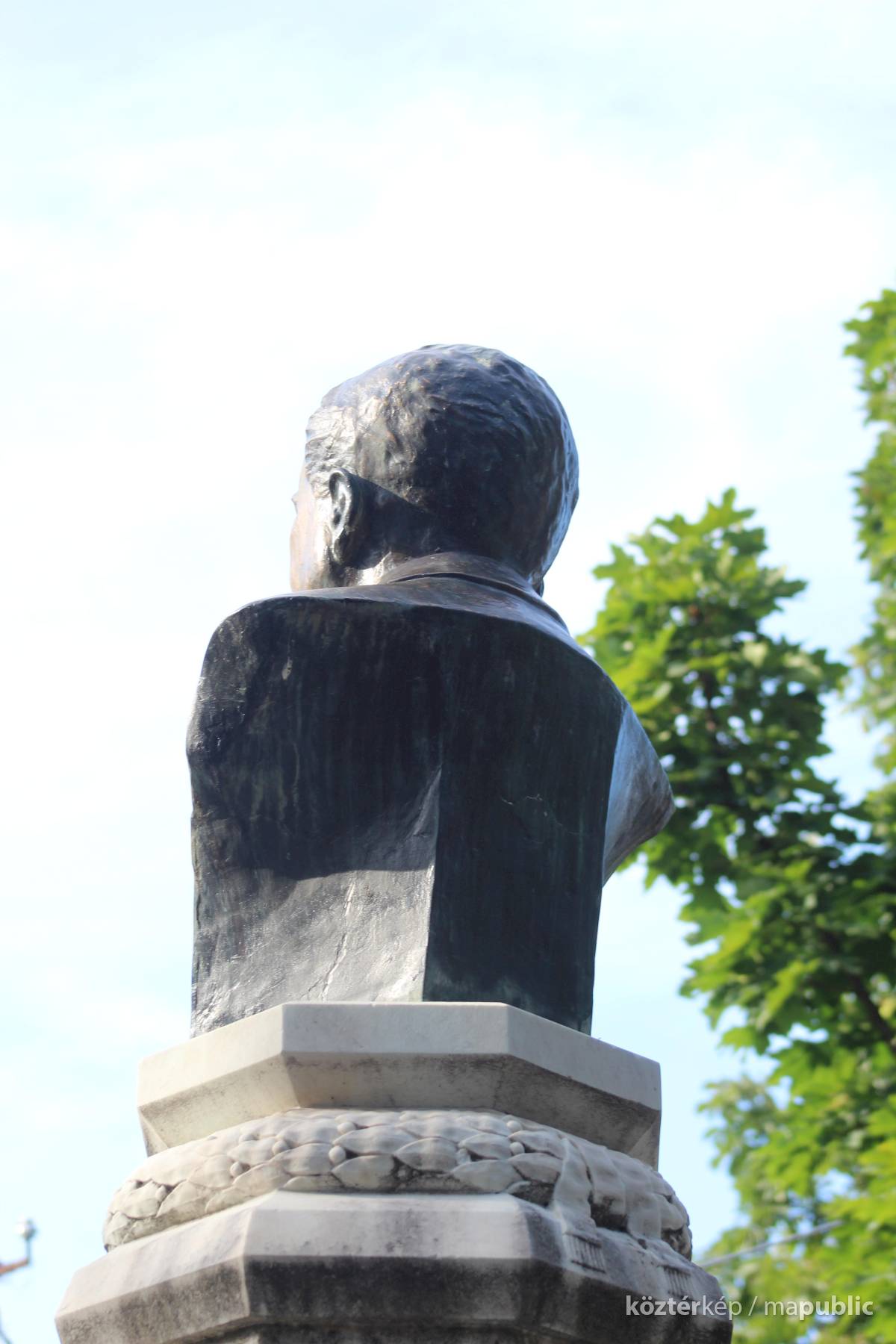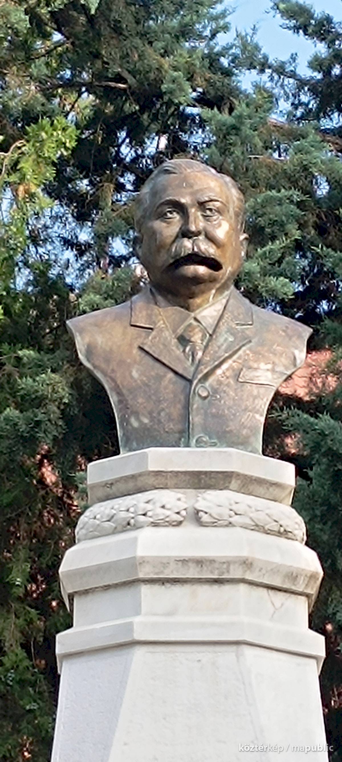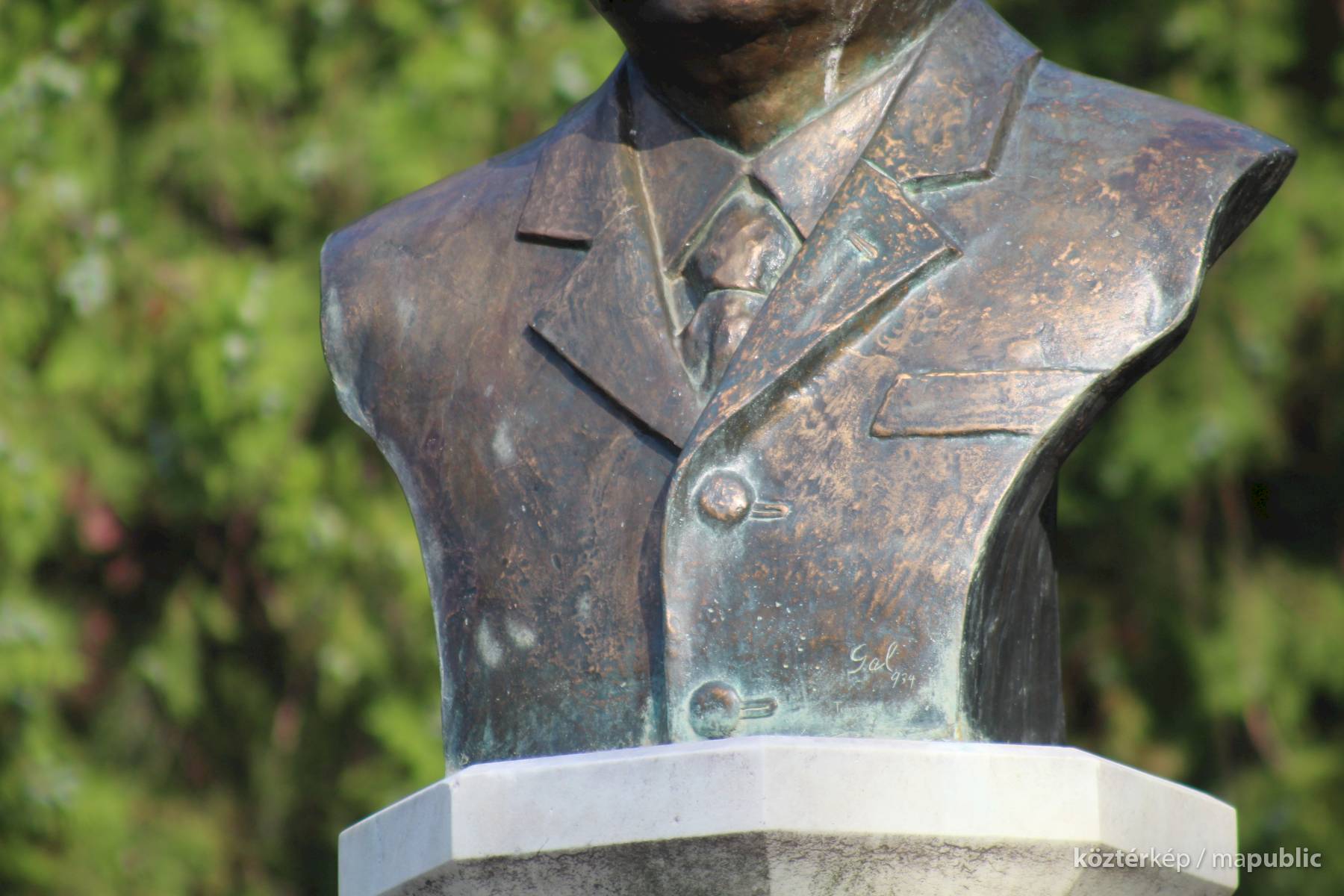 A jogász életnagyságú bronz mellszobra a fő utcán, a szökőkúttól délre közel a körforgalomhoz látható. Magas szögletes beton talapzaton áll, az alkotás alatti oszlopfőn körben fehér márványból, nyolcszög alakú díszítés látható. Valamint szalaggal átkötött mirtusz, vagy babérkoszorú. Elöl szintén márványtáblán olvasható a neve évszámok, és méltatása. 1934-ben avatták fel, [2] a Szignó alapján Gallas Nándor temesvári szobrász alkotása, szignója a készítés éve és a Temesvár felirat olvasható a szobor elején, a bal oldalon lenn. Ezt a tényt nem tudom adatokkal alátámasztani, semelyik forrásban nincs alkotó megjelölve, csak az avatás biztos.