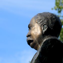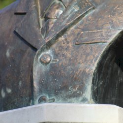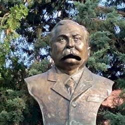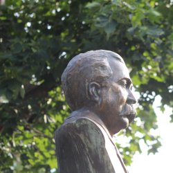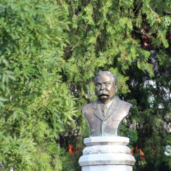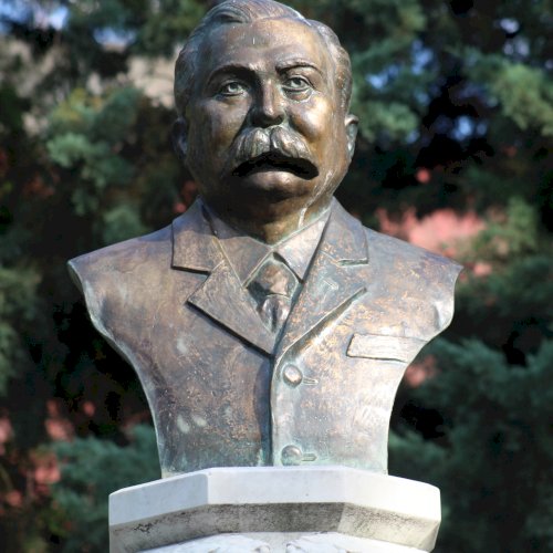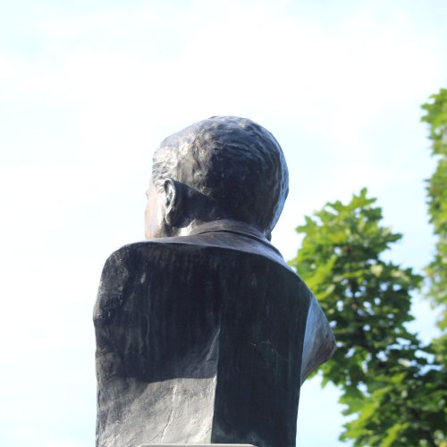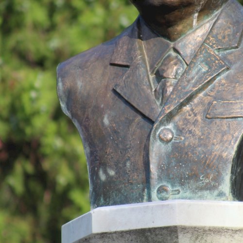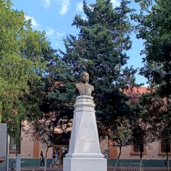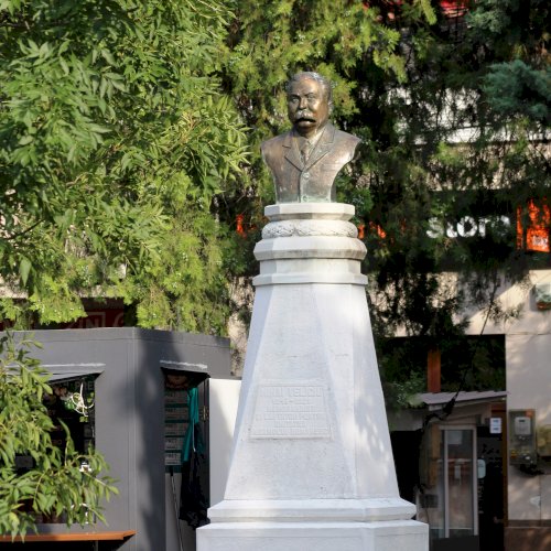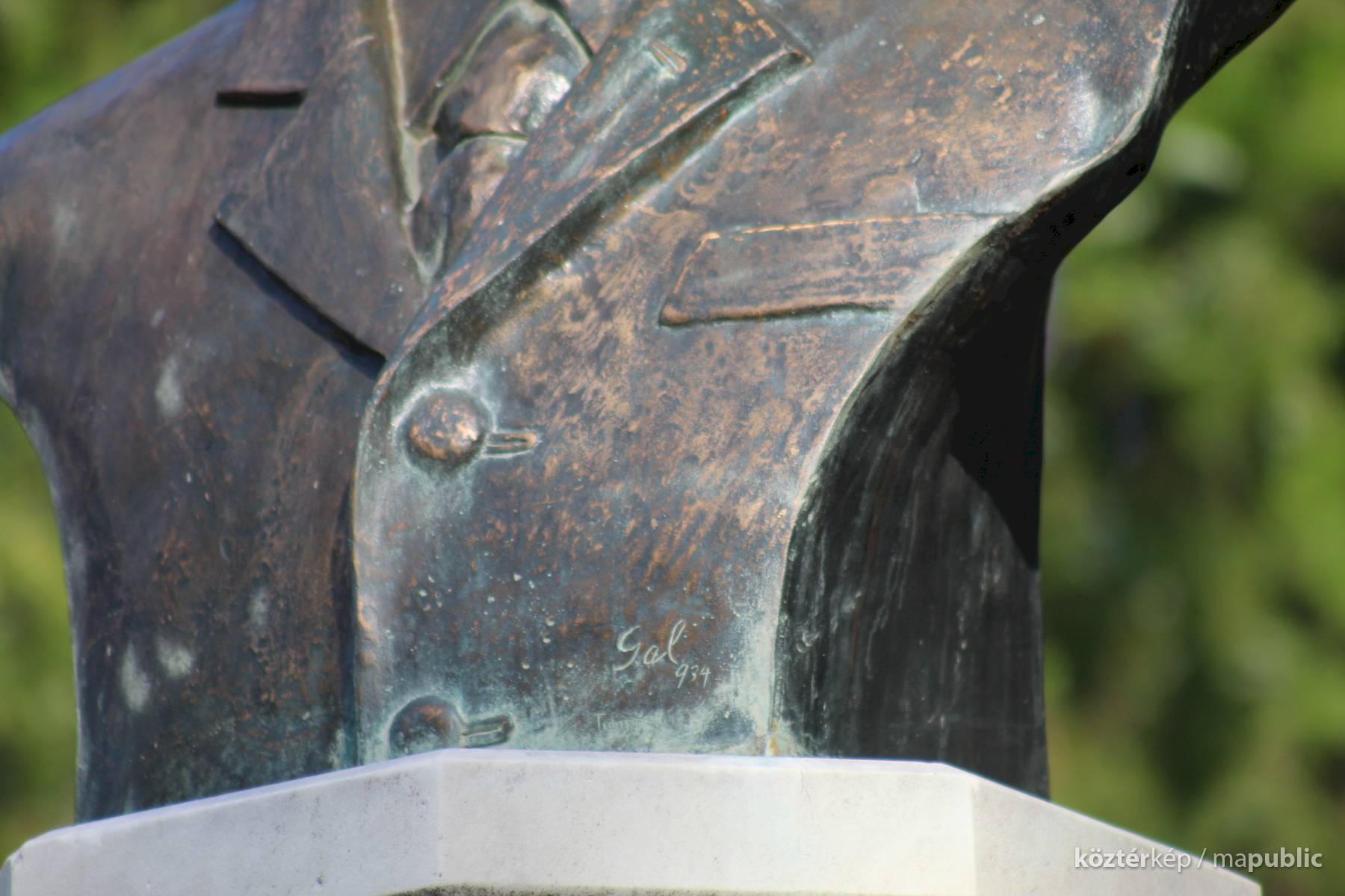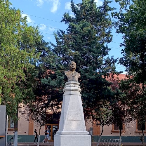 A jogász életnagyságú bronz mellszobra a fő utcán, a szökőkúttól délre közel a körforgalomhoz látható. Magas szögletes beton talapzaton áll, az alkotás alatti oszlopfőn körben fehér márványból, nyolcszög alakú díszítés látható. Valamint szalaggal átkötött mirtusz, vagy babérkoszorú. Elöl szintén márványtáblán olvasható a neve évszámok, és méltatása. 1934-ben avatták fel, [2] a Szignó alapján Gallas Nándor temesvári szobrász alkotása, szignója a készítés éve és a Temesvár felirat olvasható a szobor elején, a bal oldalon lenn. Ezt a tényt nem tudom adatokkal alátámasztani, semelyik forrásban nincs alkotó megjelölve, csak az avatás biztos.